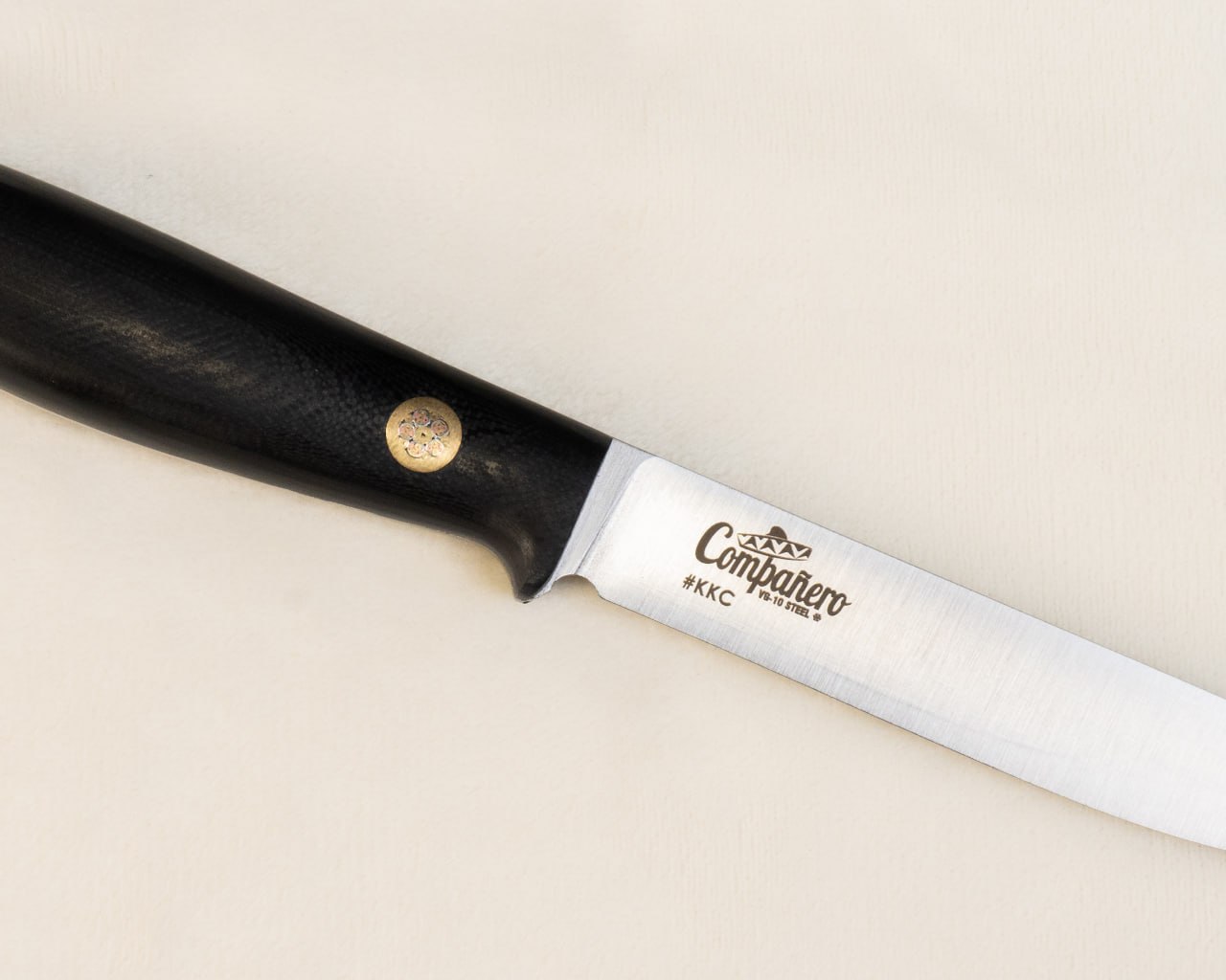 Специально к этой выставке совместно с Краснодарским Ножевым Клубом мы создали лимитированную серию ножей Companero, которые идеально подходят для активного отдыха. Эта серия отличается эксклюзивной рукояткой на мозаичных пинах, выпуклой линзой, сведенной в ноль на спусках, а лезвие ножа отмечено гравировкой номера изделия и аббревиатурой #KKC. Мы выпустили всего 24 таких ножа и все они были проданы на выставке.