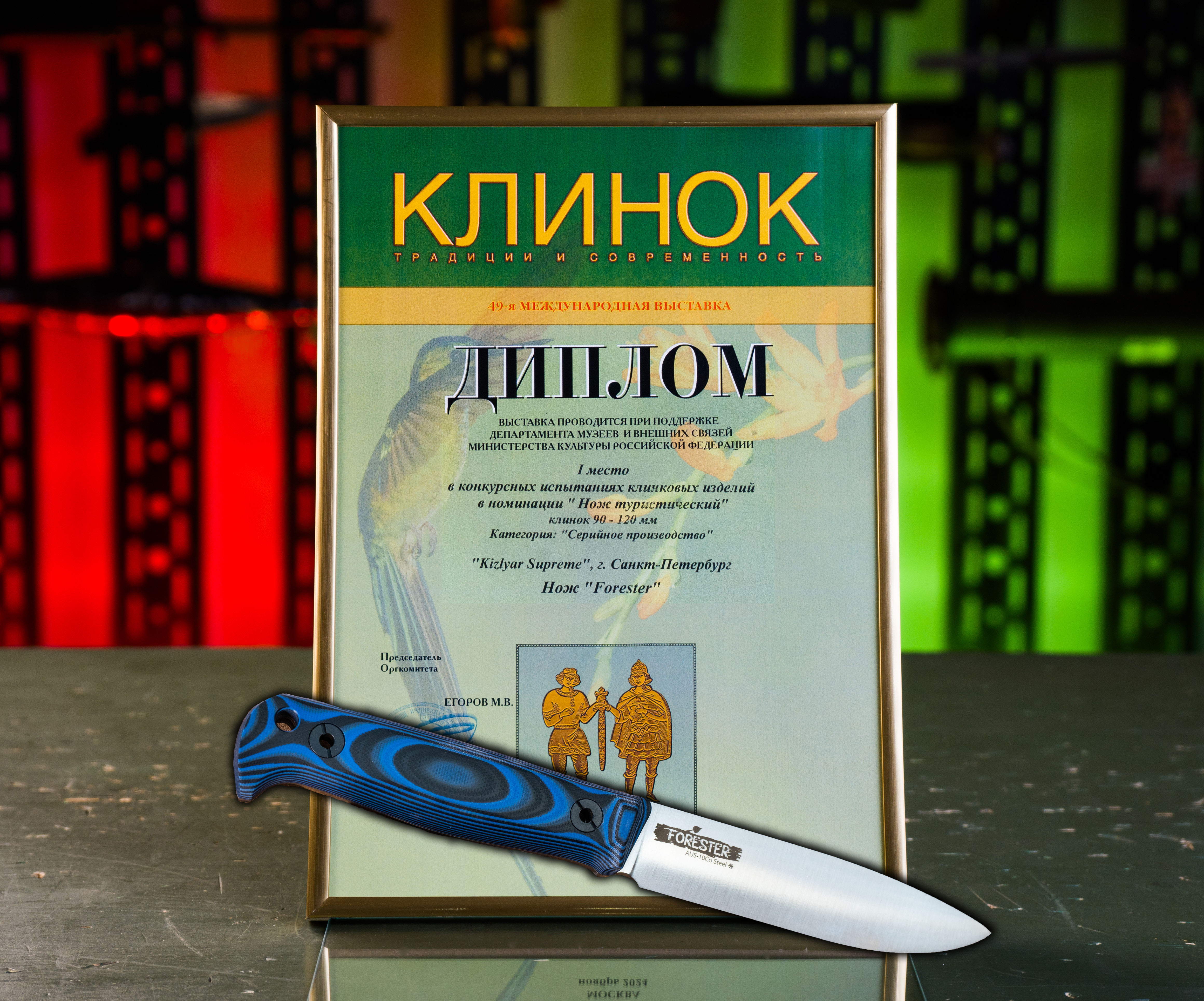 Нож Forester от Kizlyar Supreme с линзовидной геометрией в стали AUS-10Co занял 1 место среди других туристических ножей в своей номинации на всероссийской выставке «Клинок - традиции и современность». При этом он обошел целый ряд ножей из более твердых порошковых сталей, но с более простой геометрией спусков. Вот так бывает, друзья.