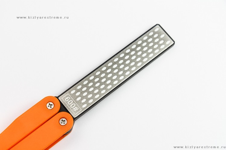 Начните обработку стороной с грубым зерном. Поместите режущую кромку клинка на абразив под желаемым углом и с небольшим усилием потяните на себя. Процедуру необходимо повторить несколько раз в зависимости от состояния режущей кромки и желаемого результата.