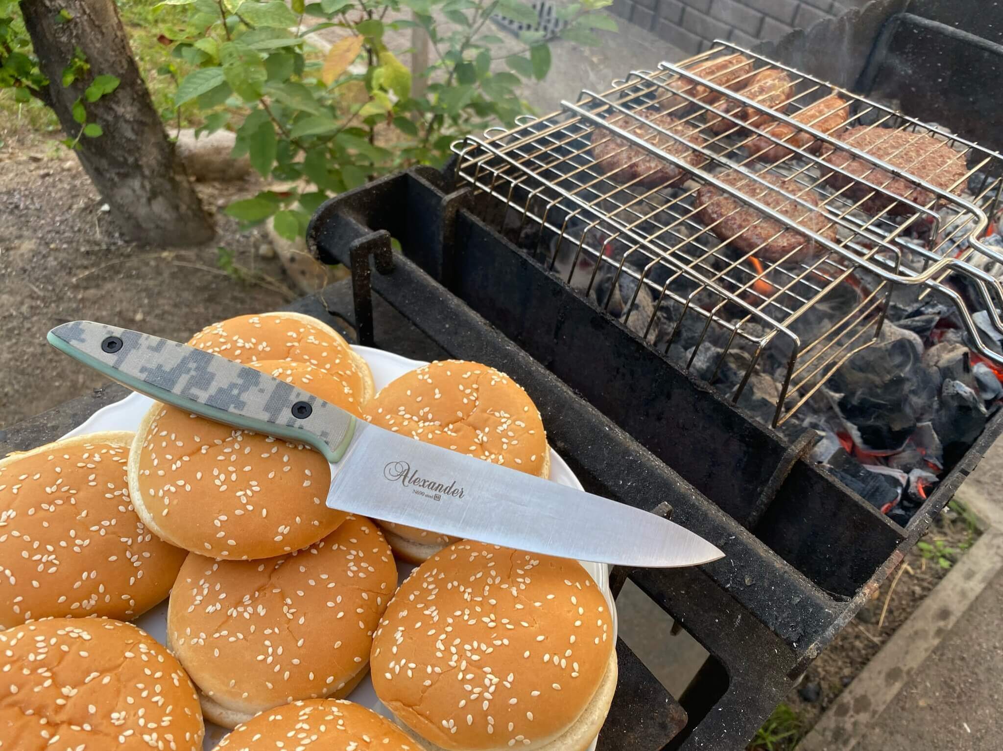 Рукояти выполнены из камуфляжного G10, который не только придает харизмы этим красавцам, но и является очень гигиеничным, так как не впитывает в себя влагу, запахи и является очень долговечным.