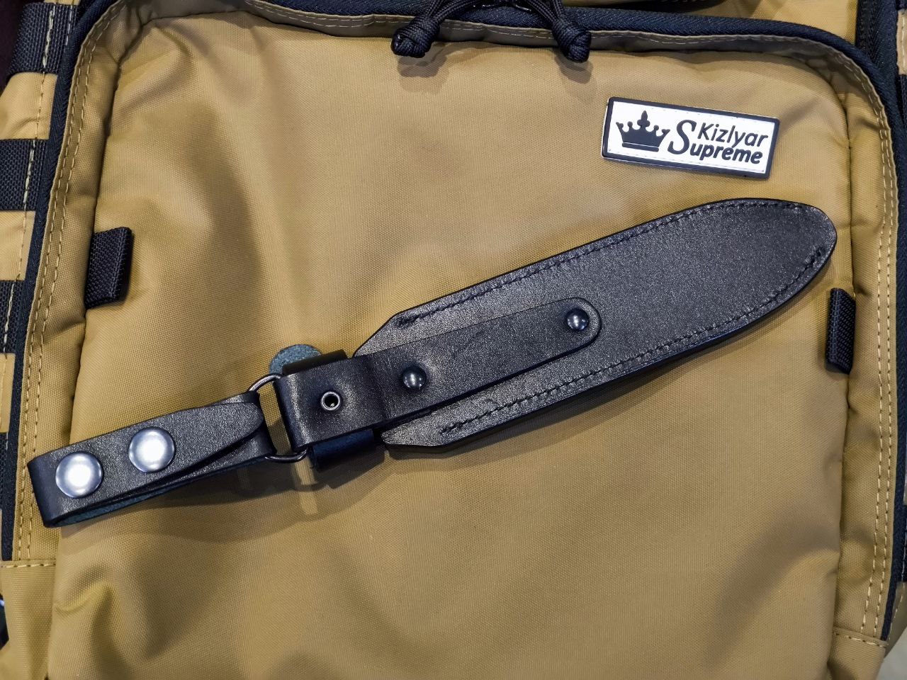 Натуральная кожа высокой плотности хорошо держит форму, устойчива к износу и со временем приобретает благородную патину. Жёсткая посадка ножа исключает люфт и случайное выпадение, а усиленная горловина облегчает извлечение и возвращение ножа в ножны одной рукой.