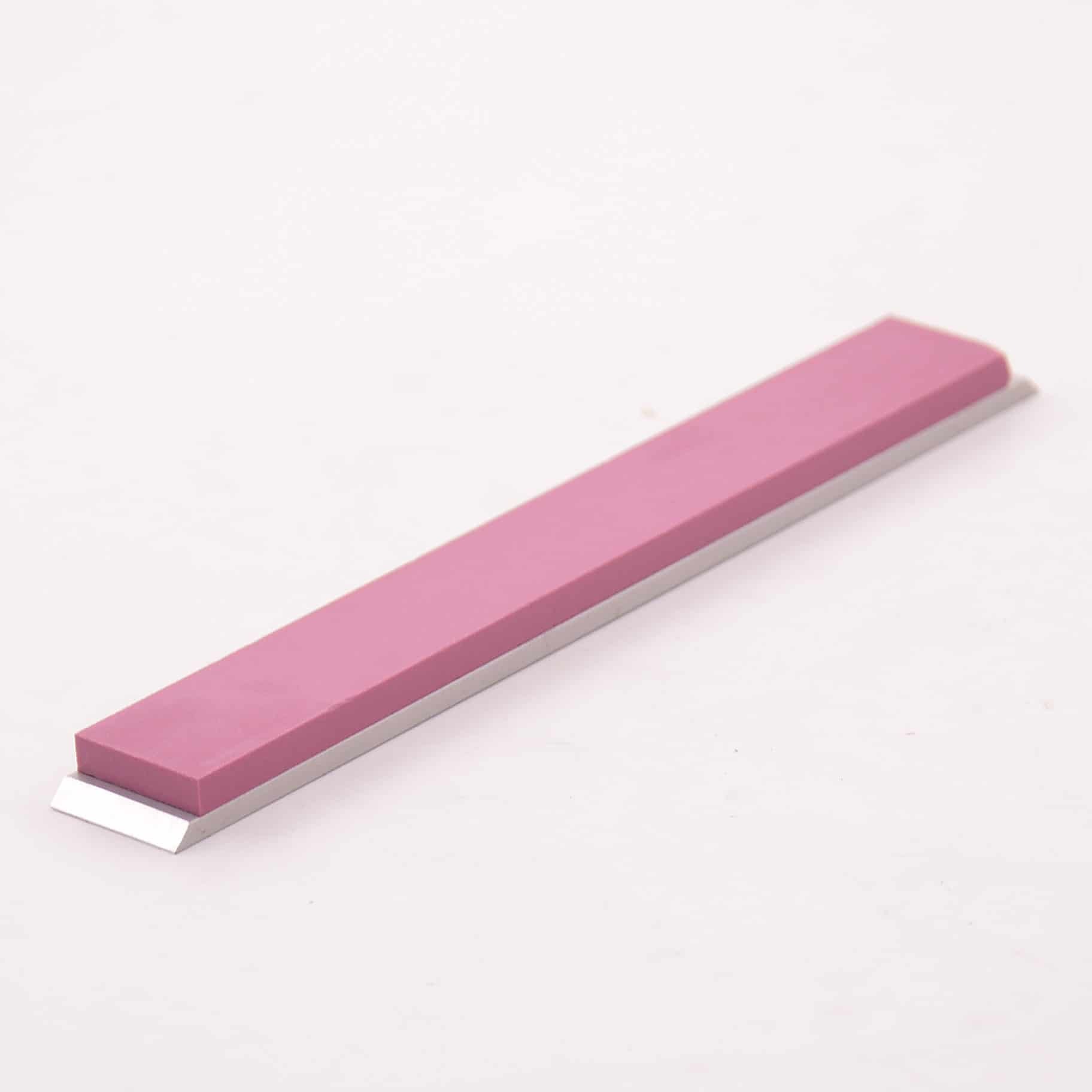 Брусок из алюмокерамики с добавлением оксида титана. Предназначен для финишной обработки подводов клинка. Керамика позволяет работать в большом диапазоне. При доведении бруска на порошке карбида кремния F600, начинает работать тоньше 5000-7000 grit и можно использовать в качестве супер финиша. Применяется для регулярной заточки режущей кромки ножей. 3000 grit это шероховатость после распила, которая идеально подходит для создания финиша на кухонной нержавейке. За счет высокой твердости камень хорошо удерживает форму.