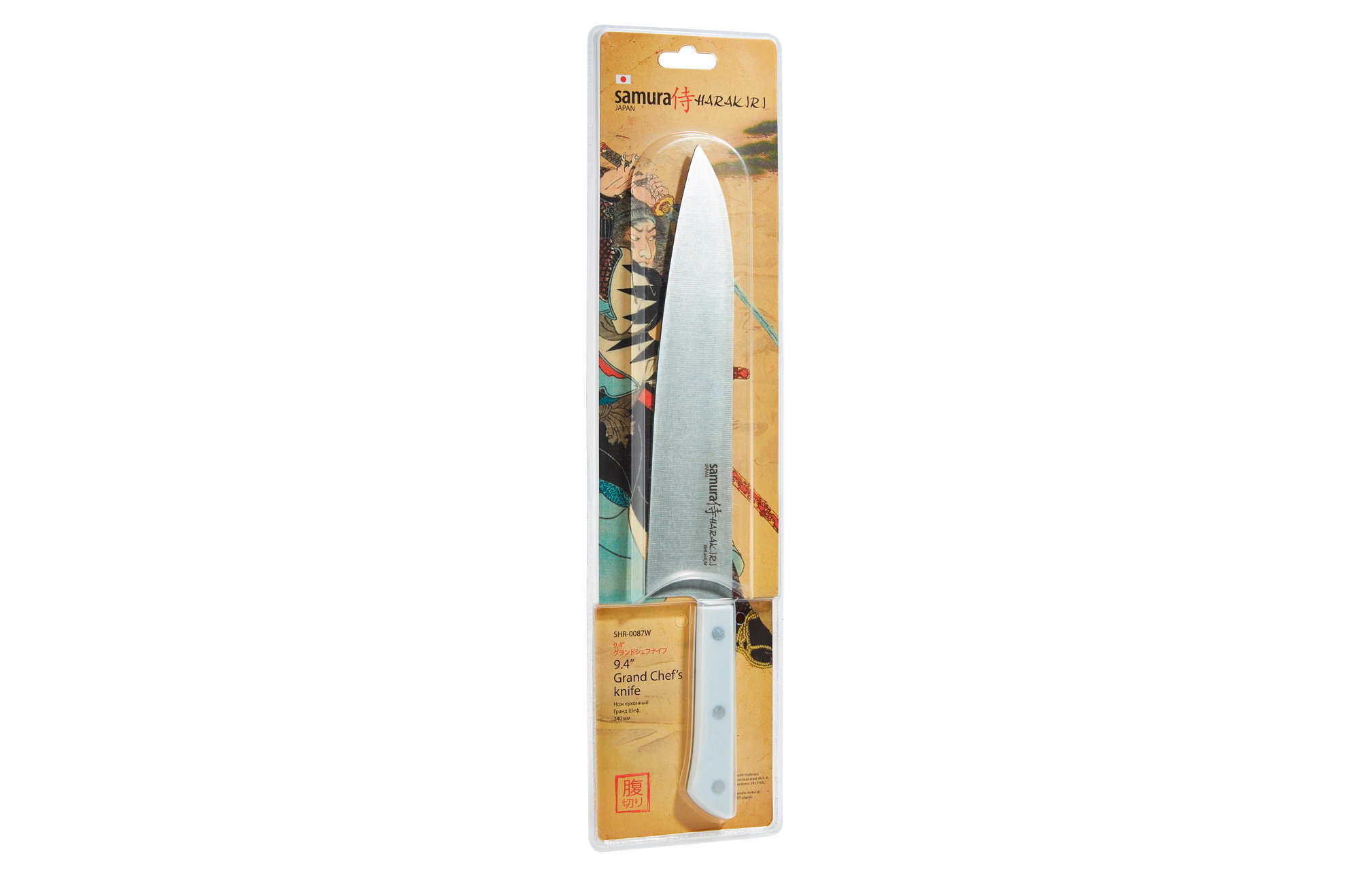 С помощью такого ножа, как достойный представитель серии Samura Harakiri, можно выполнять значительную часть кухонных операций. С полным комфортом для рук можно резать, рубить, шинковать самые разнообразные продукты – от растительных до белковых.