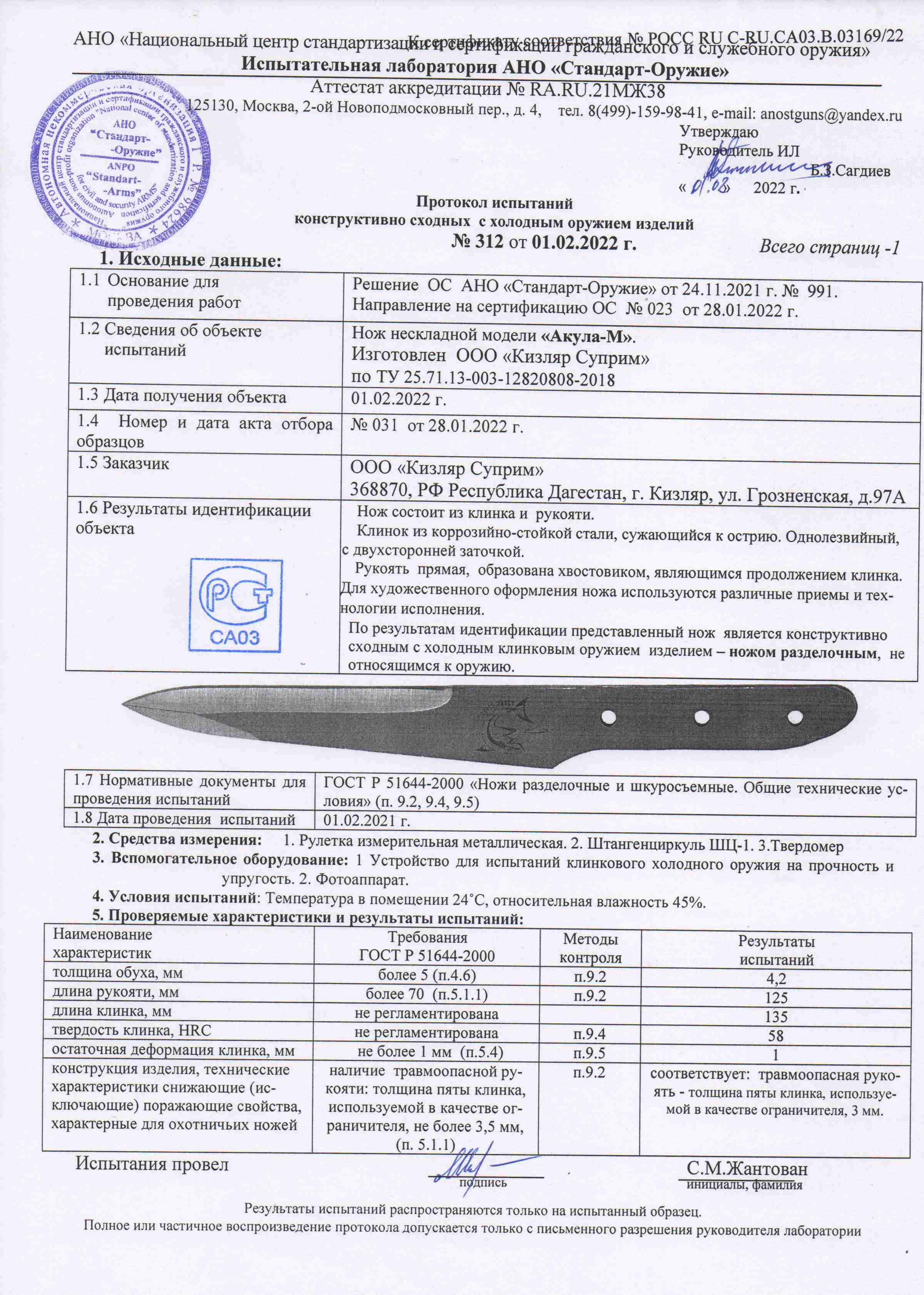 Буква "М" в названии означает что это уже модернизированная версия ножа.