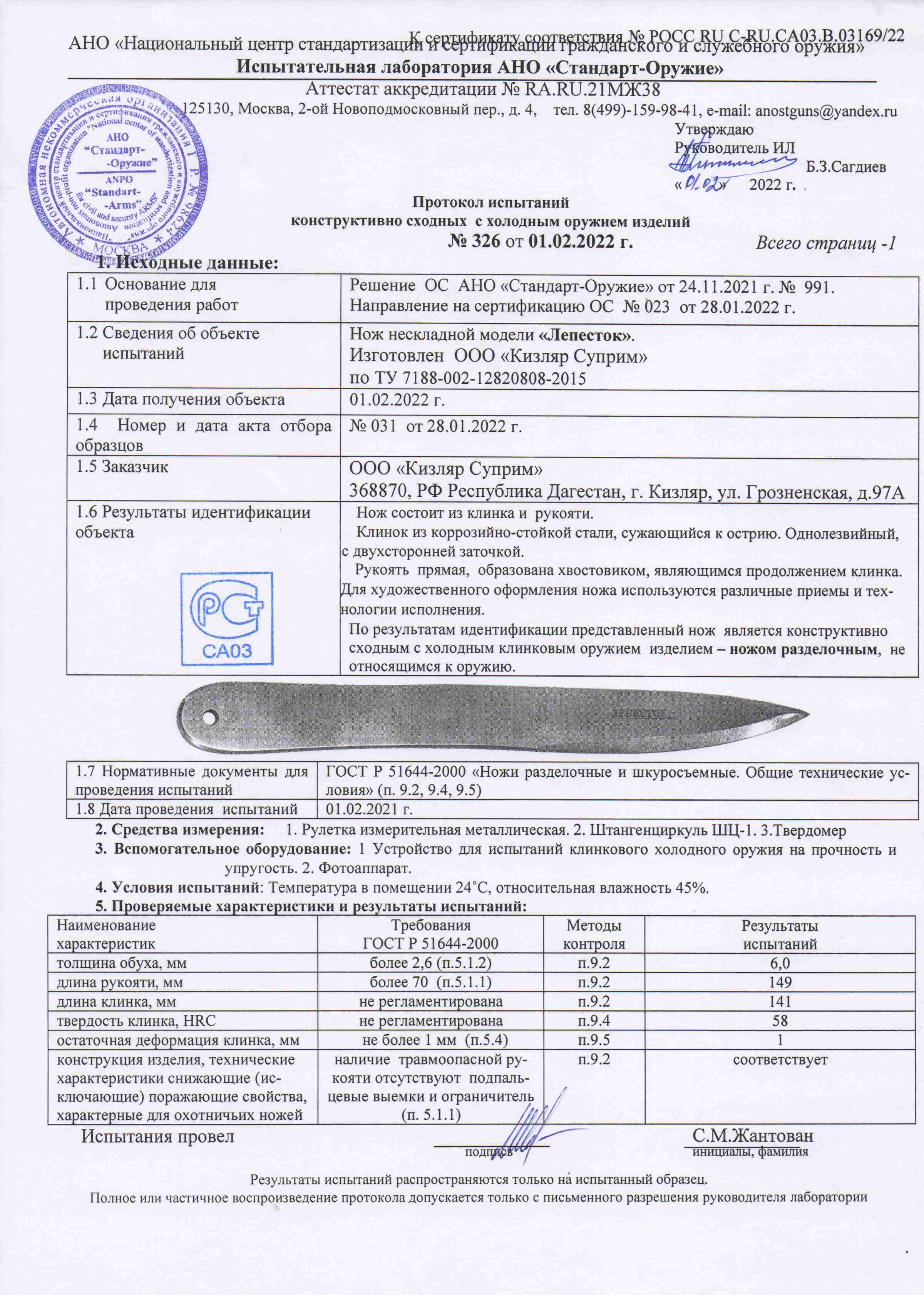 Лепесток один из самых тяжелых и длинных метательных ножей, его вес составляет 325 г, а длина 292 мм. Благодаря таким внушительным параметрам и симметричной кинжальной форме, Лепесток можно часто встретить на соревнованиях по метанию ножей.