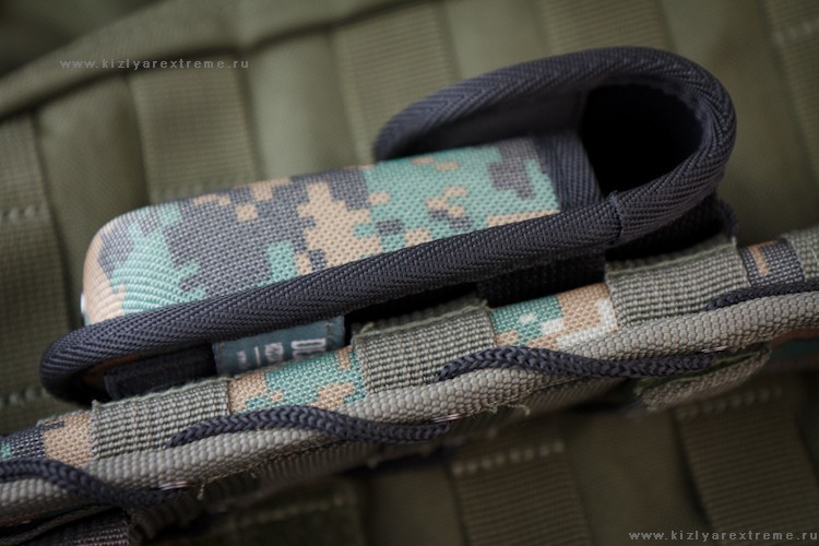 С помощью петель MOLLE можно регулировать высоту крепления подсумка на ремне.