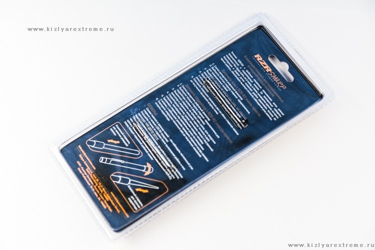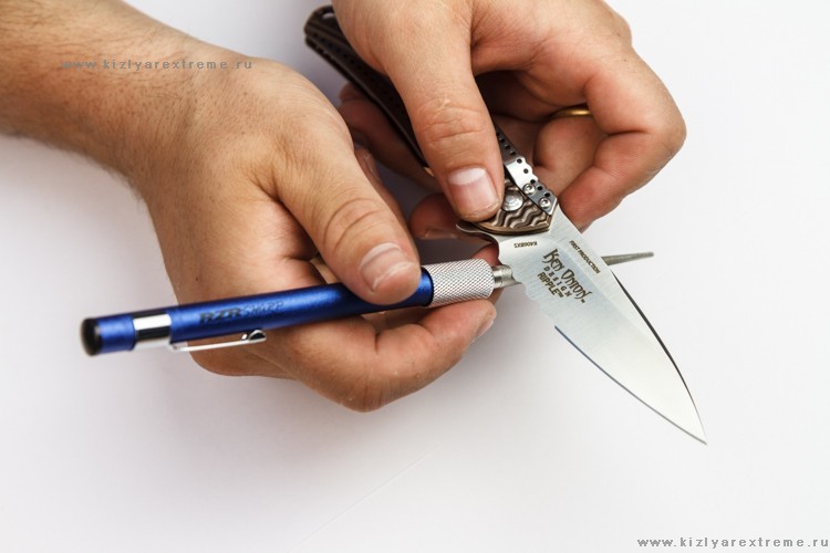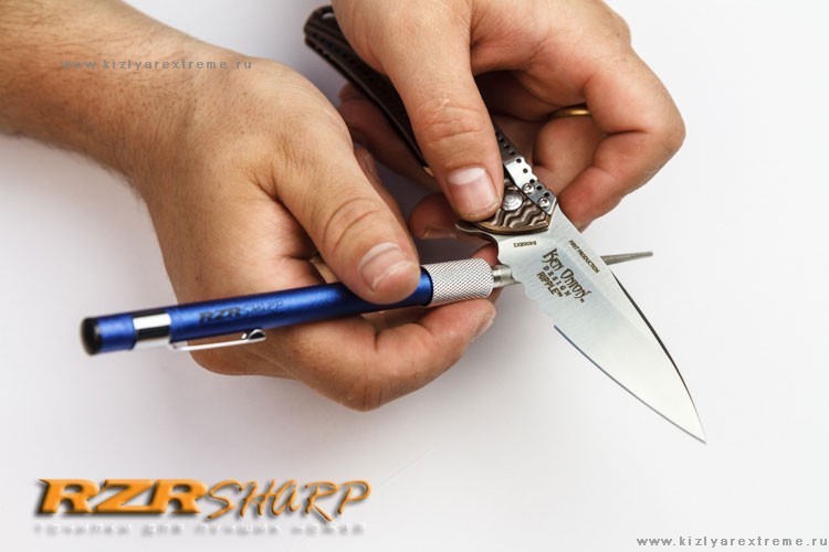 - Пользоваться острыми ножами гораздо эффективнее и приятнее, чем затупленными. Мы рекомендуем слегка править режущую кромку ваших ножей, проходя несколько раз точилкой RZR-R2, перед каждой серьезной работой ножом