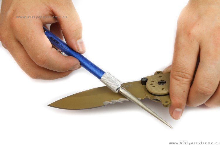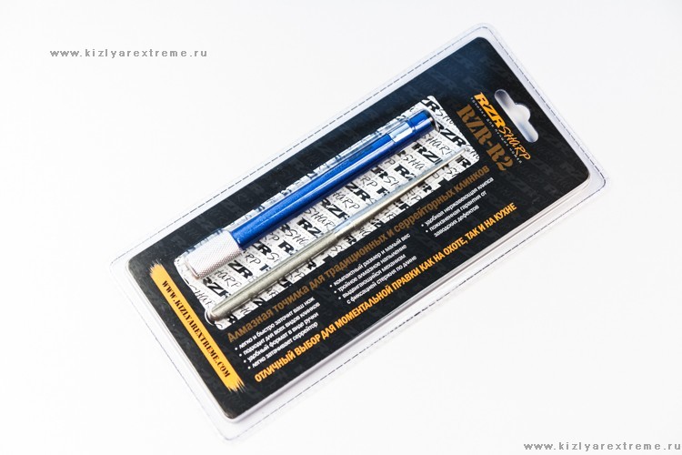 Точилка RZR-R2 с тройным алмазным напылением легко заточит традиционные и серрейторные клинки, а также рыболовные крючки.