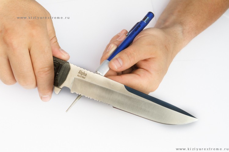 - Выберите тонкую сторону стержня - предназначена для серрейтора (лезвие в форме зубчиков)