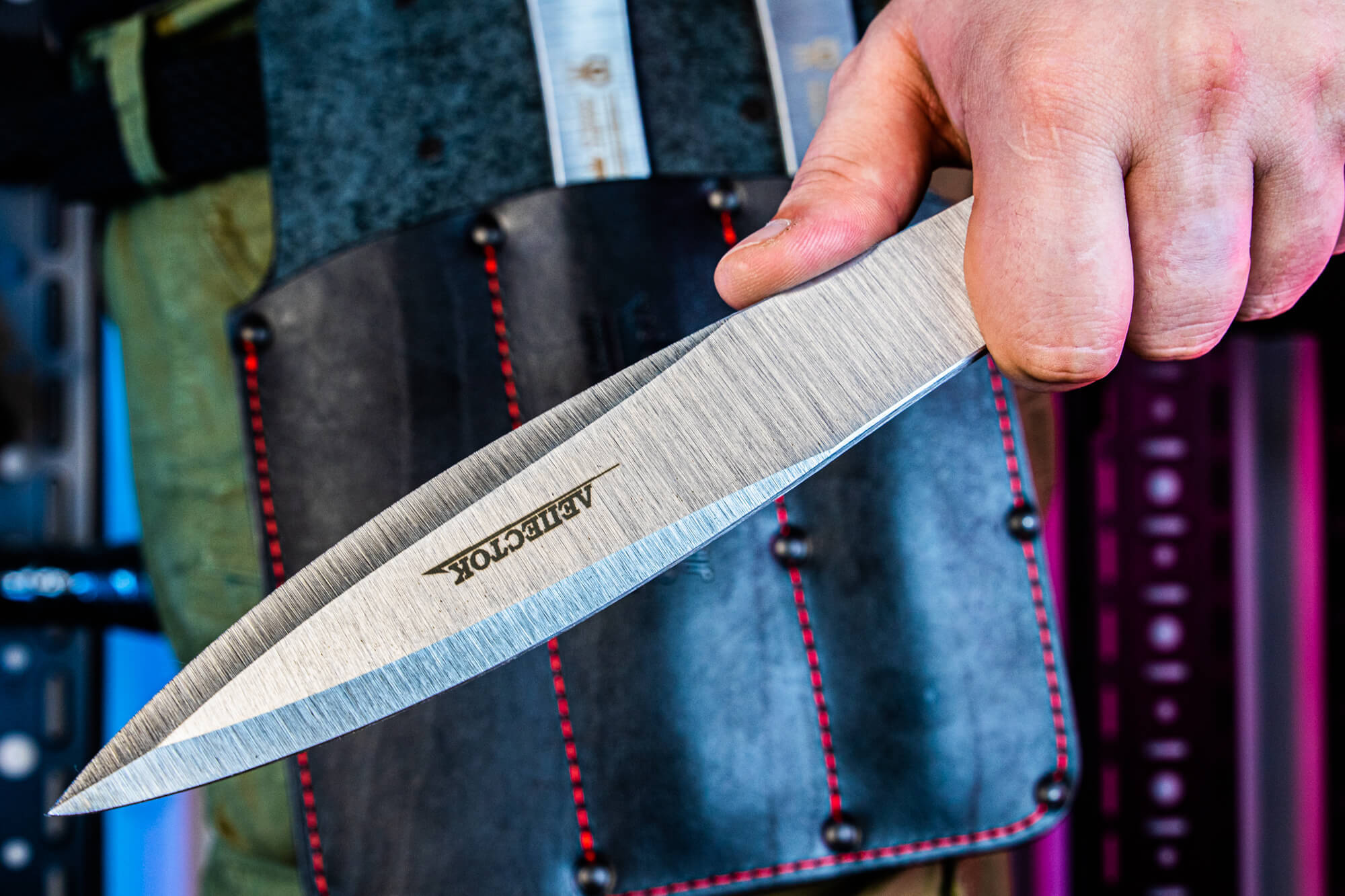 Большой вес и кинжальная форма обеспечивают ножу внушительную проникающую способность.