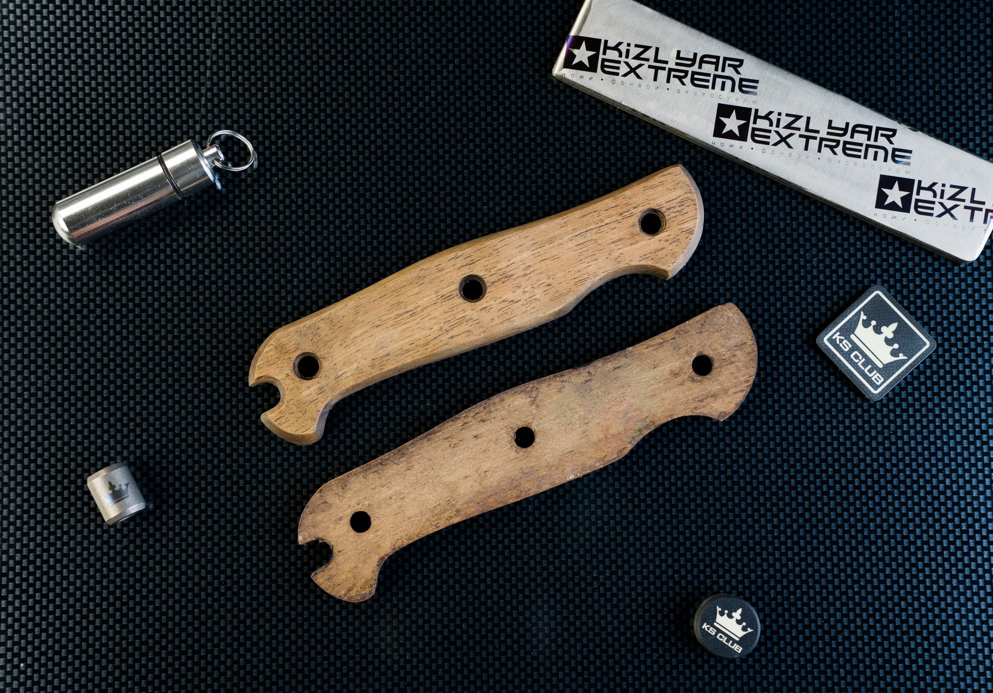 Накладки изготовлены из ореха, очень приятные на ощупь, для поклонников натуральных материалов.