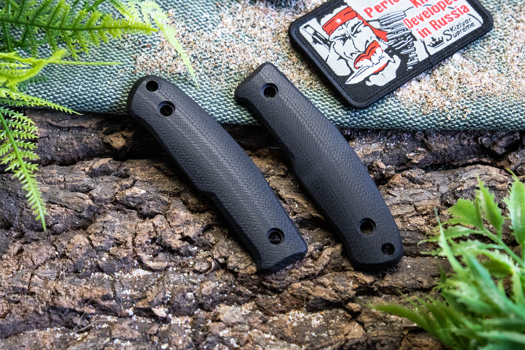 Прочные накладки для ножа Asket из долговечного и устойчивого к внешним воздействиям материала G10 черного цвета.