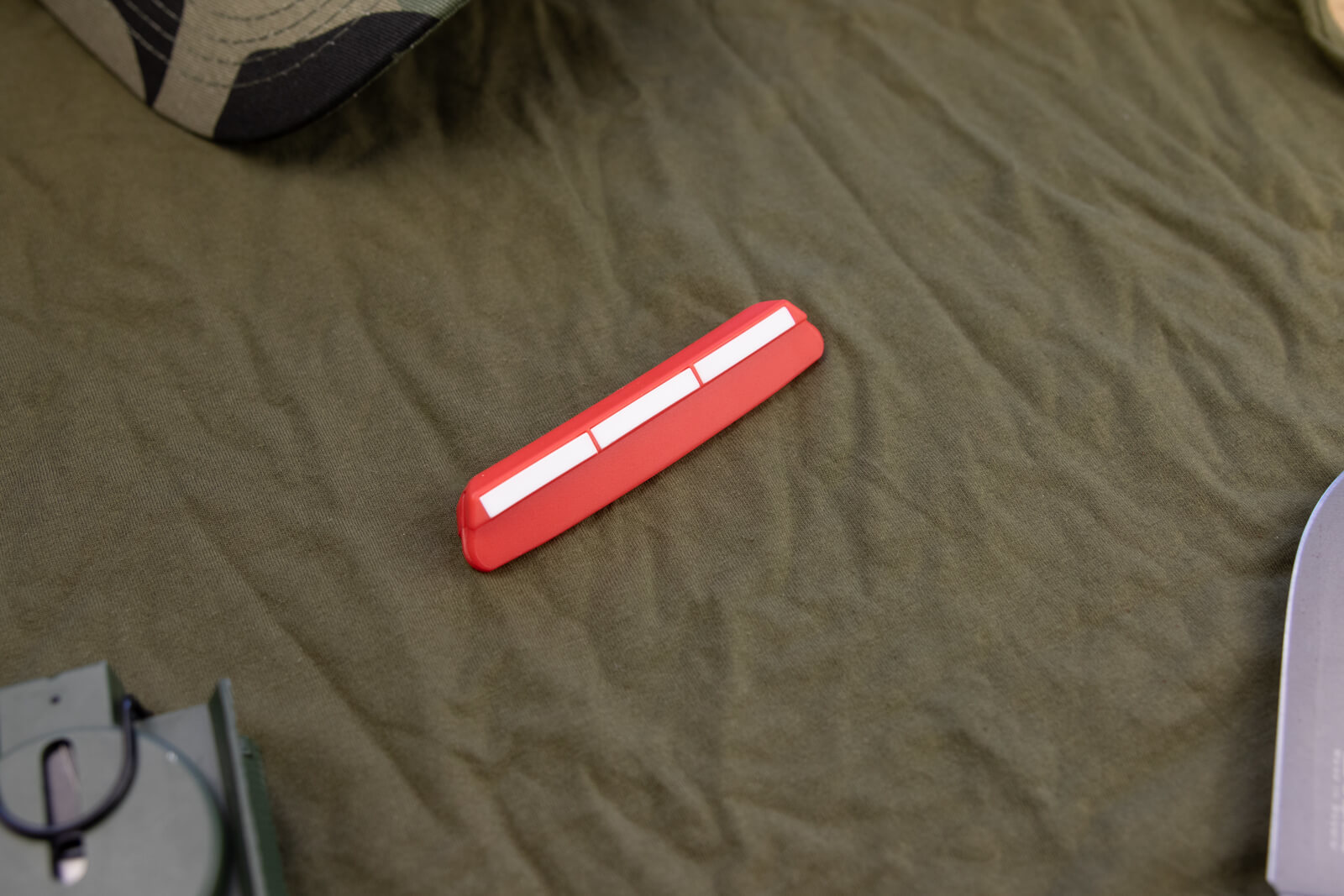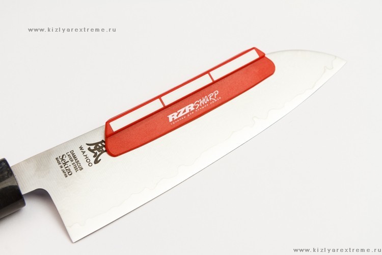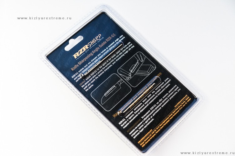 Использование: Установите RZR-G1 на обух клинка, разместите клинок на камне и обрабатывайте режущую кромку сначала с одной стороны, потом с другой до достижения желаемого результата, угол заточки будет постоянным.