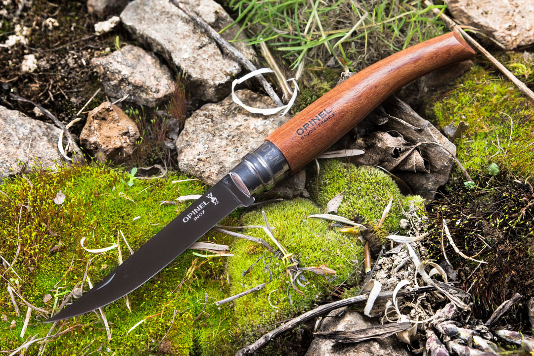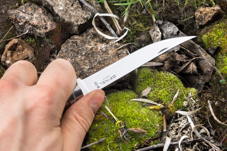 Филейные ножи используются для работы с филе рыбы или мяса, а также с некоторыми другими продуктами. Однако они не предназначены для очень высоких нагрузок, что обязательно следует учитывать. Модель Opinel №8 отлично вписалась в эту серию и является одним из ее наиболее популярных представителей. Этот нож сделана из нержавеющей стали, которая называется Sandvik 12C27. Это хорошо сбалансированный шведский сплав с выраженной стойкостью к коррозии. В то же время, такой металл имеет твердость до 58 HRC, что позволяет сделанным из него ножам долго обходиться без заточки. Длина лезвия – 10 см. Оно гладко заточено до самого кончика и, в соответствии с назначением ножа, имеет узкое полотно и остро заточенным и довольно тонким кончиком. Максимальная его толщина – 1,5 мм, поэтому лезвие остается довольно гибким ножом удобно отрезать филе от кости. Отполировано лезвие этого ножа зеркально.