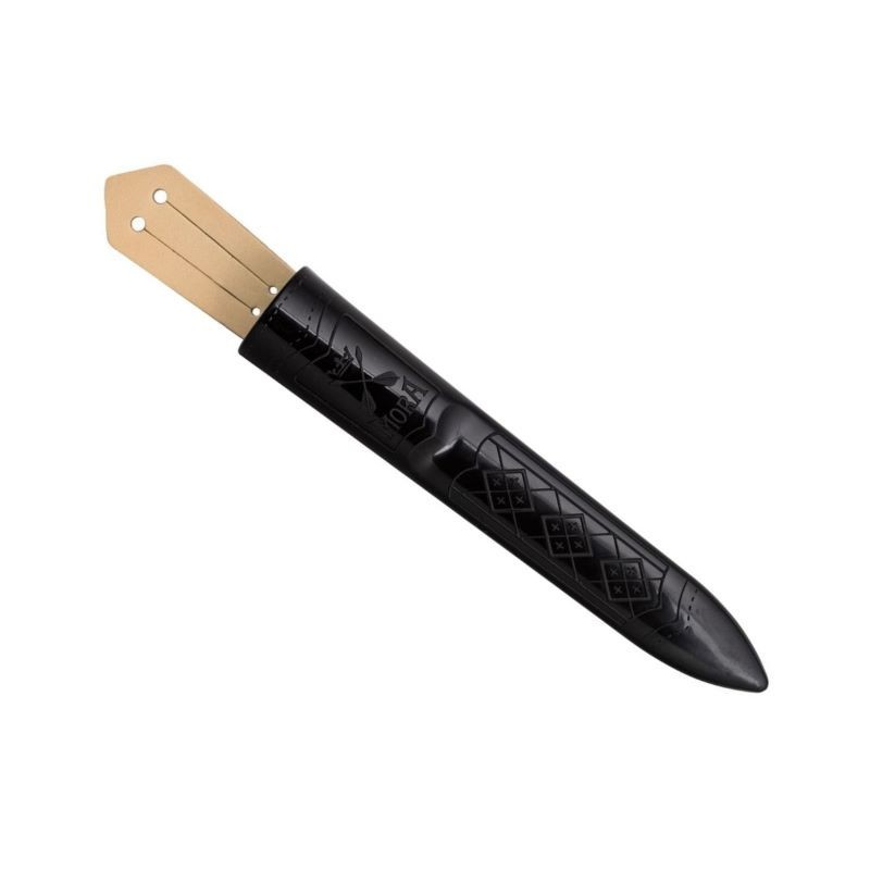 В ножах новой коллекции классических ножей Morakniv хвостовик полностью проходит через рукоятку и заклепывается на торце.