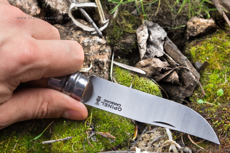 Несмотря на использование другого метала, клинок Опинель №10 имеет стандартную форму и размеры и единственным внешним отличием от версии из нержавейки является пометка «carbone».