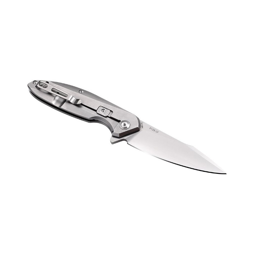 Лезвие этой модели сделано из одной из лучших ножевых марок стали под названием 14C28N. Этот сплав отлично сбалансирован: является твердым (до 60 HRC), но с ярко выраженными нержавеющими свойствами. Сделанный из него нож будет легко заточить и не потребуется особенно тщательно за ним ухаживать. Он даже в состоянии выдерживать такие условия, какие характерны для рыбалки: высокая влажность и невозможность своевременно вытирать лезвие ножа. Длины клинка, равной 93 мм, достаточно, чтобы ним было удобно резать не только продукты питания, но и любые другие материалы. А для работы с твердыми волокнами как нельзя кстати придется то, что толщина лезвия P128-SB составляет аж 3,5 мм. Лезвие по всей своей длине гладко заточено. Оно не бликует в солнечных лучах, поскольку отшлифовано методом Stone washed, а дополнительную привлекательность для ножа создает то, что он сделан черным.