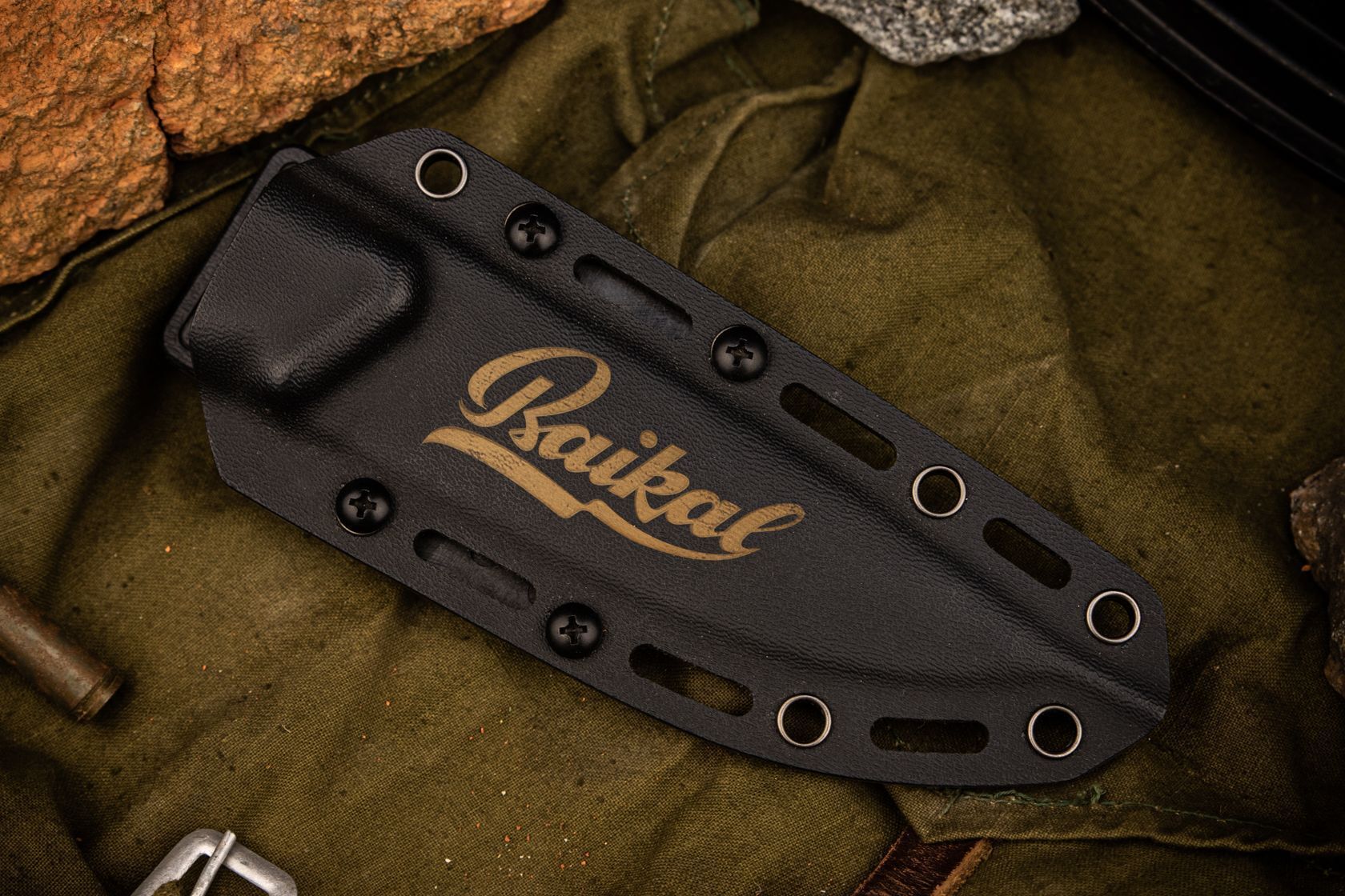 Нож Baikal разработан концерном Калашников и произведен на мощностях российского ножевого завода Kizlyar Supreme. Изначально эта модель комплектуется ножнами из кожи, но по просьбам клиентов производитель ввел в ассортимент и вариант в кайдексе (Kydex) с платформой.
