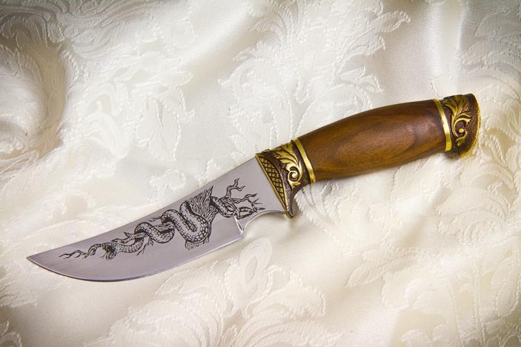 Гюрза-2 с искусно украшенными гардой и навершием из латуни, очень похожей на золото. Гюрза-2 является одним из первых произведенных ООО ПП Кизляр ножей и всегда был одной из самых популярных моделей благодаря своей необычной конструкции и функциональным качествам. Теперь Гюрза-2 предлагается в благородно украшенном виде.