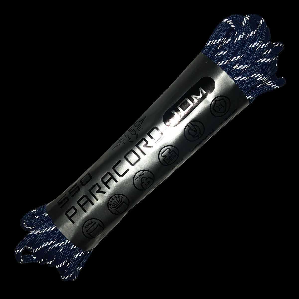 Паракорд 550 blue (REFLECTIVE) 10м используется для создания браслетов, ожерелий, брелоков, ключниц и других handmade-изделий с элементами безопасности и стиля.