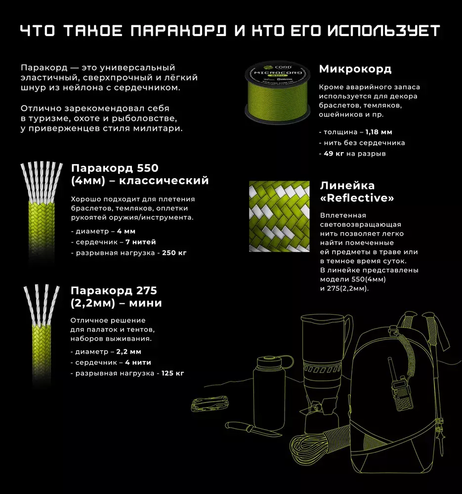 Применение светоотражающего паракорда 550