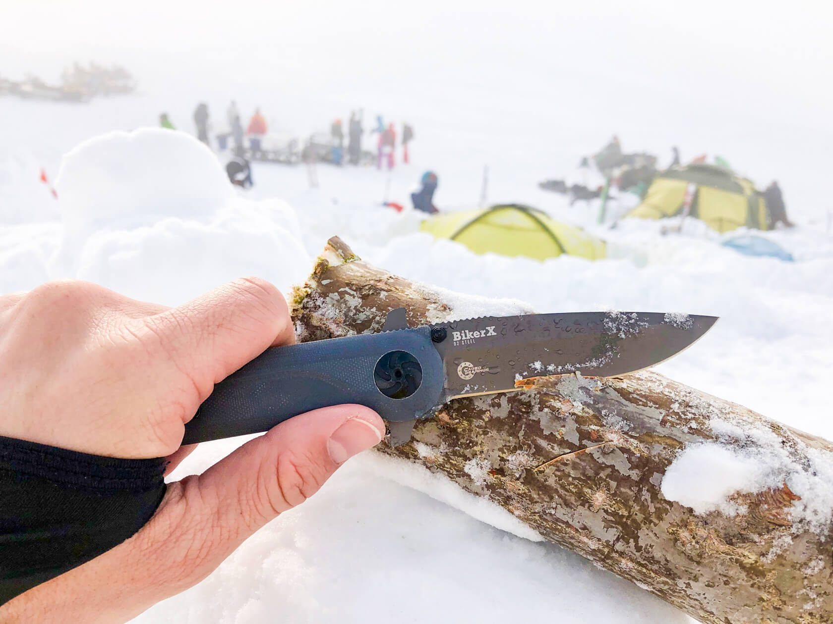 Biker Z AUS-8 может похвастаться серым клинком из стали AUS-8 с суперпрочным титановым покрытием и эргономичной рукоятью из G10.