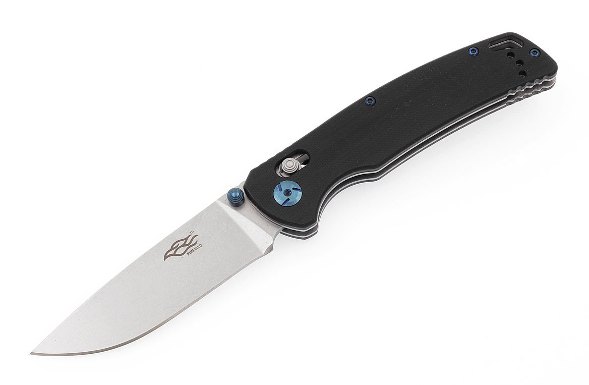 Удобство ножа Firebird 727M заключается в том, что это складная модель. Он без труда поместится в любом рюкзаке или даже в кармане одежды. Длина ножа в этом состоянии составляет всего 12 см. Зато при открывании его размеры увеличиваются до 21 см, из которых 8,9 см приходится на лезвие. Клинок заточен заточкой гладкого типа, что также влияет на его универсальность. Толщина клинка в самом широком месте составляет 0,35 см. Для его изготовления производители использовали одну из наиболее сбалансированных марок нержавеющей стали - 440С. Такой сплав хорошо противостоит образованию ржавчины и появлению других признаков коррозии. При этом, он достаточно прочный - 58 HRC, а также недорогой.