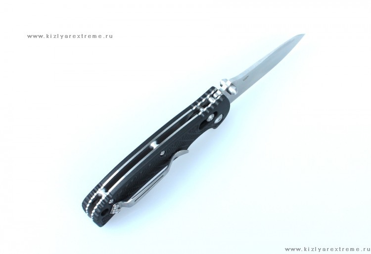 Его конструкция позволяет открыть нож одной рукой и делает невозможным случайное срабатывание механизма.