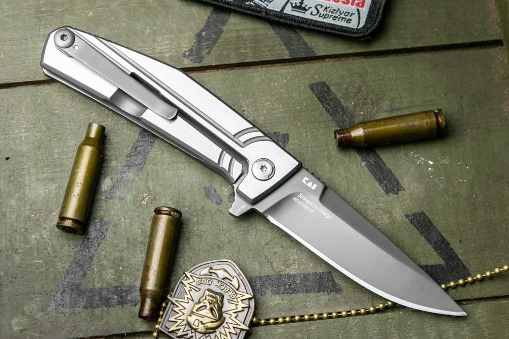Серое покрытие клинка завершает образ современного, технологичного складного ножа.