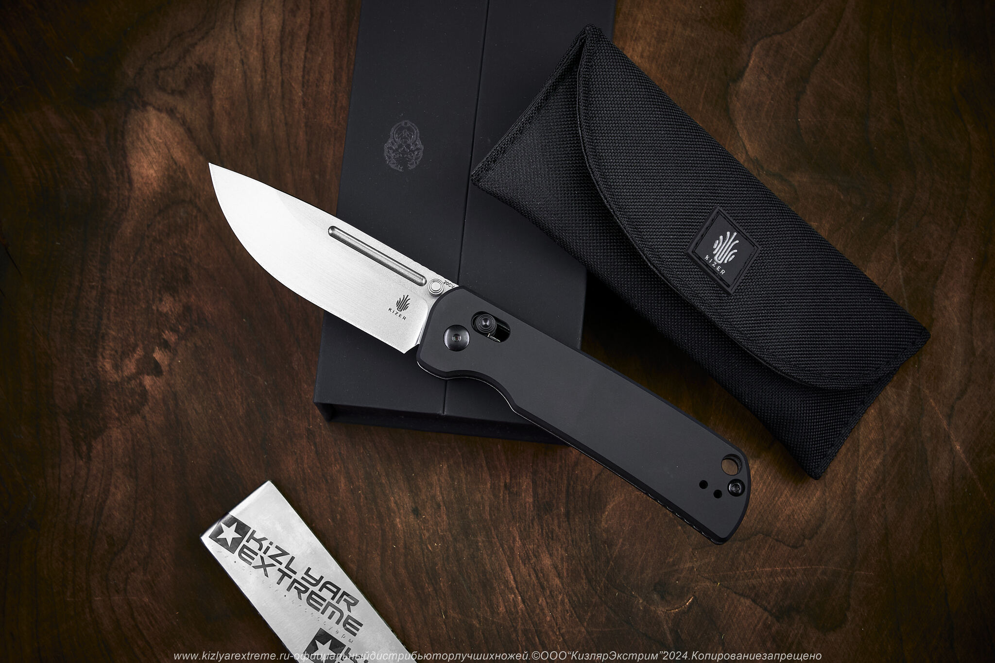 Kizer Escort — удобный нож для повседневного ношения (EDC) с практичным клинком формы drop-point, который открывается с помощью двустороннего шпенька. Рукоять ножа сделана из алюминия, удобно ложится в руку и не скользит. На ней есть клипса для удобства ношения и отверстие для темляка. Фиксация открытого положения обеспечивается замком Clutch Lock, который позволяет настраивать силу нажатия кнопки под себя. Накладки рукояти съемные, что дает доступ к регулировочным отверстиям для настройки замка.