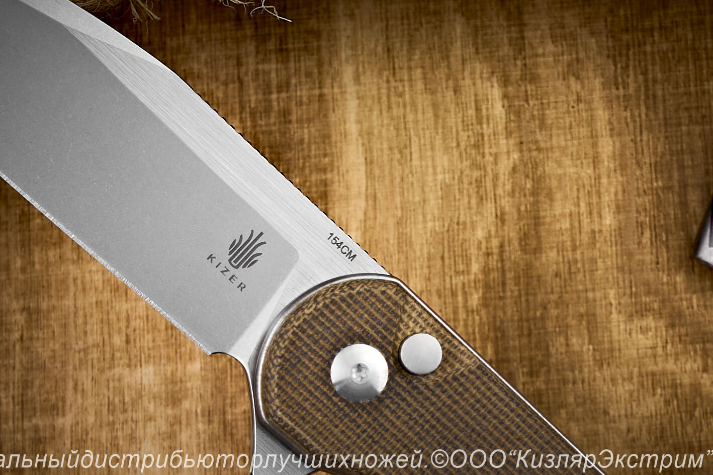 Клинок изготовлен из стали 154CM, которая изначально создавалась для лопаток газовых турбин. Эта сталь пользуется популярностью среди производителей ножей и закаливается до 60 HRC, сохраняя устойчивость к боковым нагрузкам.