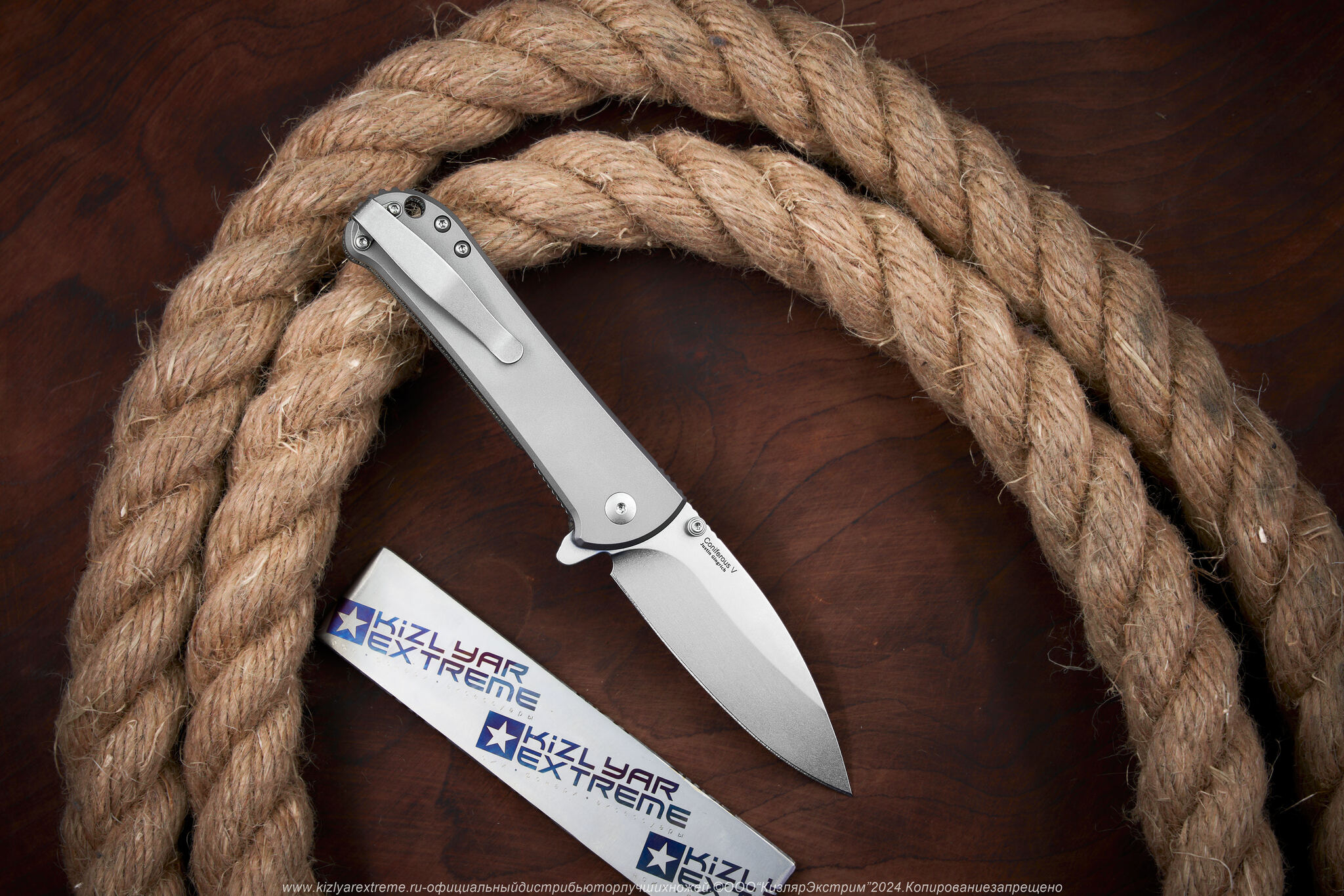 Рукоять из титана и микарты имеет простую и удобную форму. Для ношения в кармане предусмотрена клипса, а также есть отверстие для темляка.