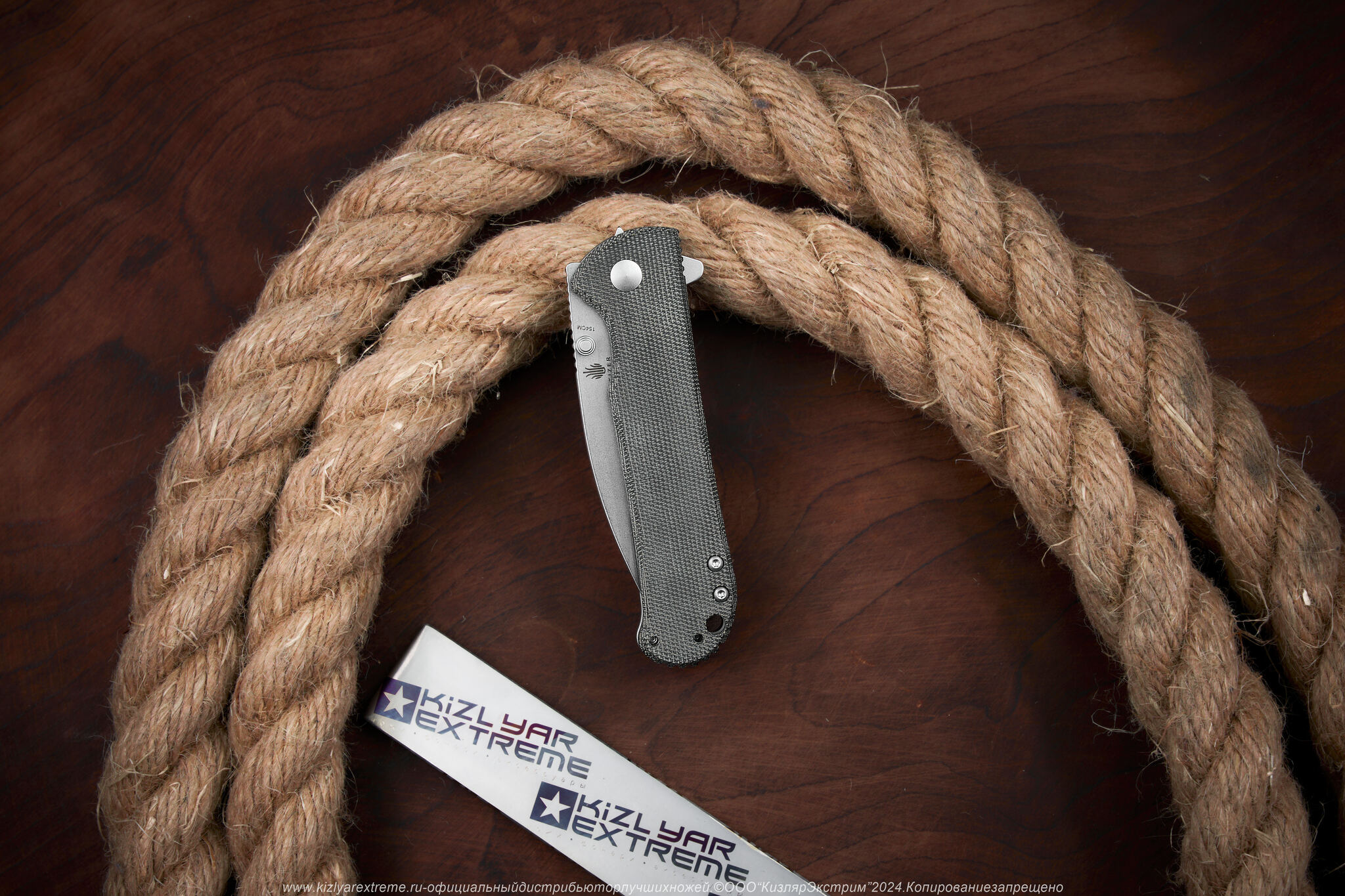 Клинок изготовлен из стали 154CM, которая изначально была разработана для лопаток газовых турбин. Эта сталь популярна среди производителей ножей благодаря своей устойчивости к коррозии и высоким механическим характеристикам. Закалка до 60 HRC обеспечивает хорошую прочность и сохранение остроты, хотя сталь сложнее затачивать. Аналогом является японская сталь ATS-34.