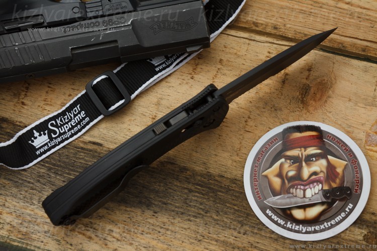 Он безопасен для ношения в кармане, так как чтобы его открыть нужно потянуть за кнопки механизма, что отличает его от большиства полу-автоматов, которые могут произвольно открыться в кармане владельца.