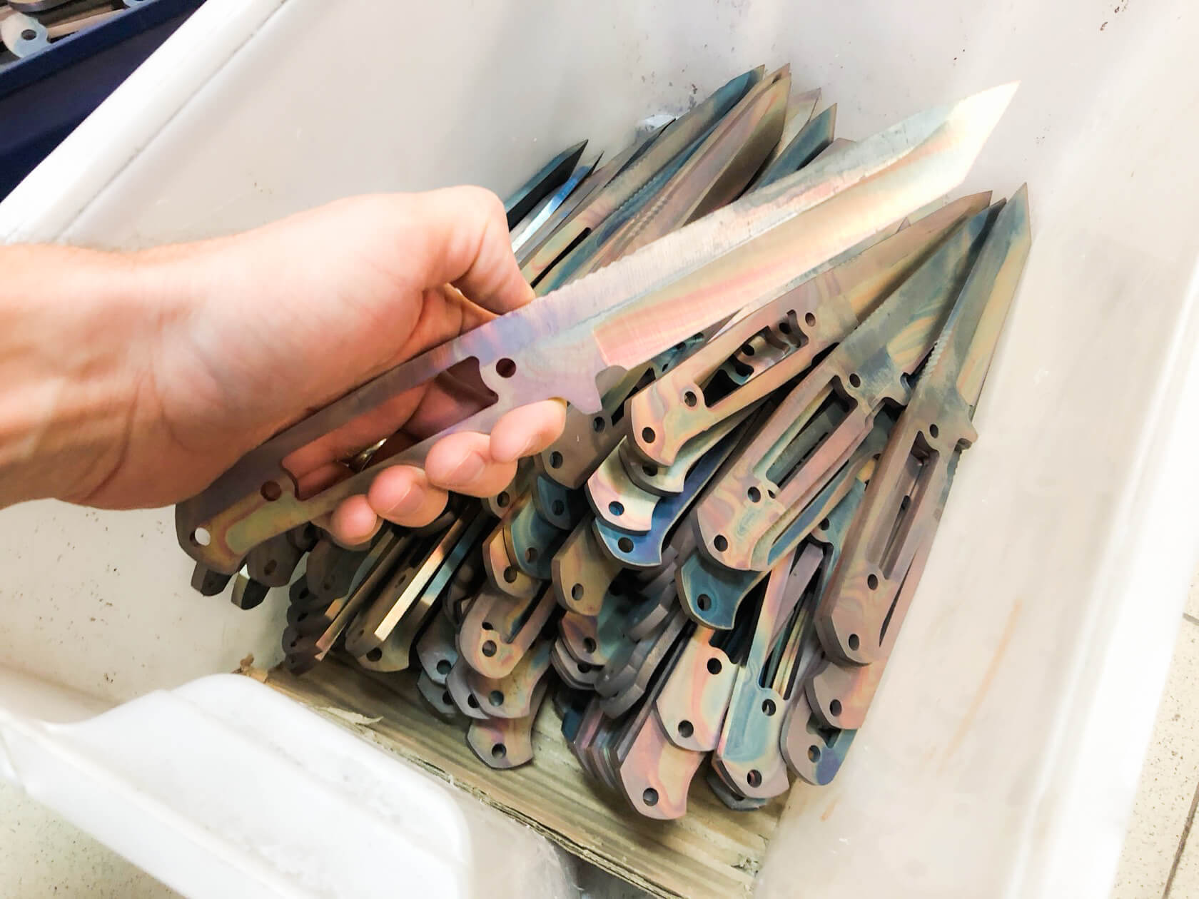 Конструкция ножей простая, но максимально прочная: накладки рукояти, изготовленные из Kraton, известного своей износоустойчивостью к истиранию и повышенными фрикционными качествами, прикручены к цельнометаллическому хвостовику резьбовыми стяжками, а также дополнительно проклеены. Стоит отметить, что рукоять идеально совместима с тактическими перчатками.