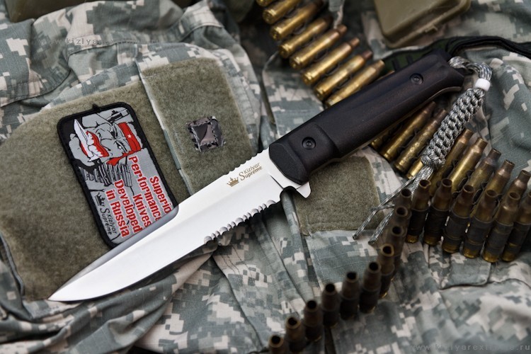 Alpha с серрейторной заточкой - очередной результат плотного сотрудничества с силовыми структурами, которым волей-неволей порой приходится оказываться в экстремальных ситуациях.
