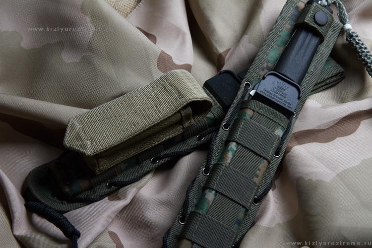 Ножи комплектуются ножнами, адаптированными под систему крепления MOLLE. При проектировании ножен учитывался ряд требований, чтобы соответствовать жестким стандартам НАТО: нож должен быть бесшумен при ношении, вставляться в ножны любой стороной, надежно фиксироваться не менее чем двумя точками крепления.
