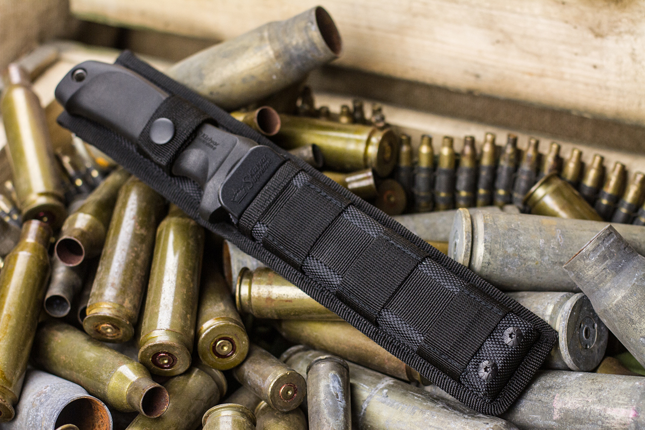 Ножны состоят из многофункционального подвеса из баллистического нейлона и закрепленного в нем высокотехнологичного вкладыша из стекло наполненного полиамида.