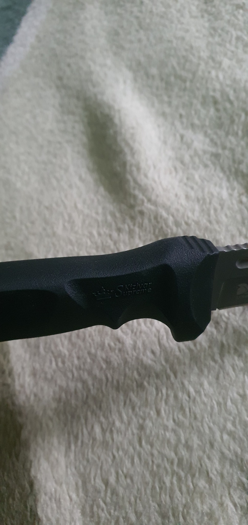 Цельная кратоновая рукоять, учитывает анатомию руки, особенно удобна для работы в перчатке. Данный нож разрабатывался для эксплуатации в подразделениях МЧС.