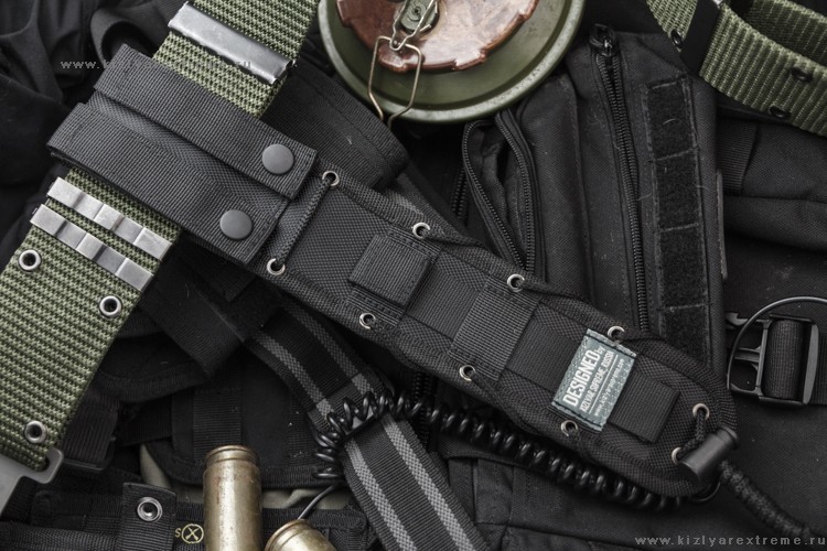 Ножны имеют дополнительный ремешок, фиксирующий нож в ножнах в самом узком месте рукояти в районе навершия.