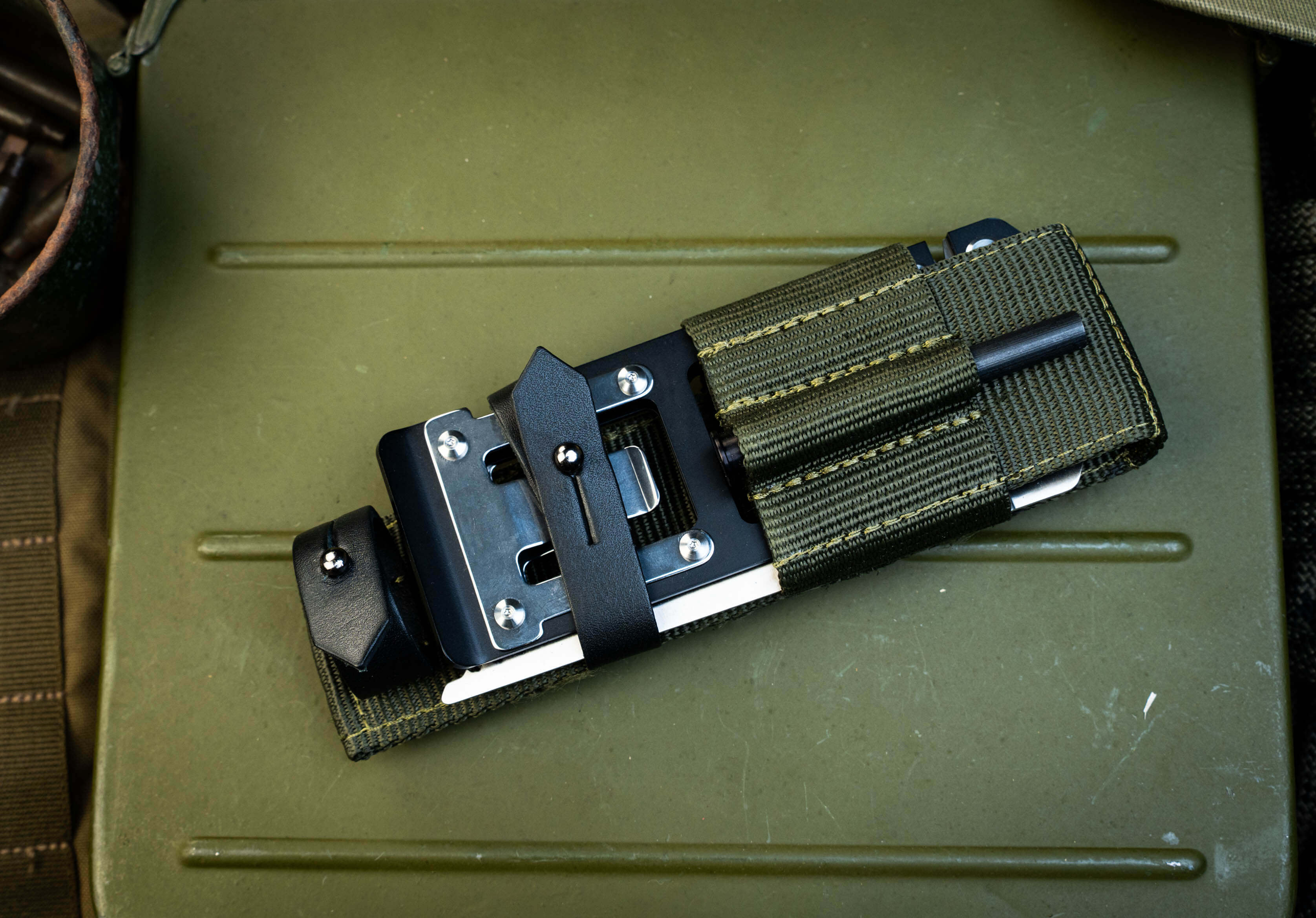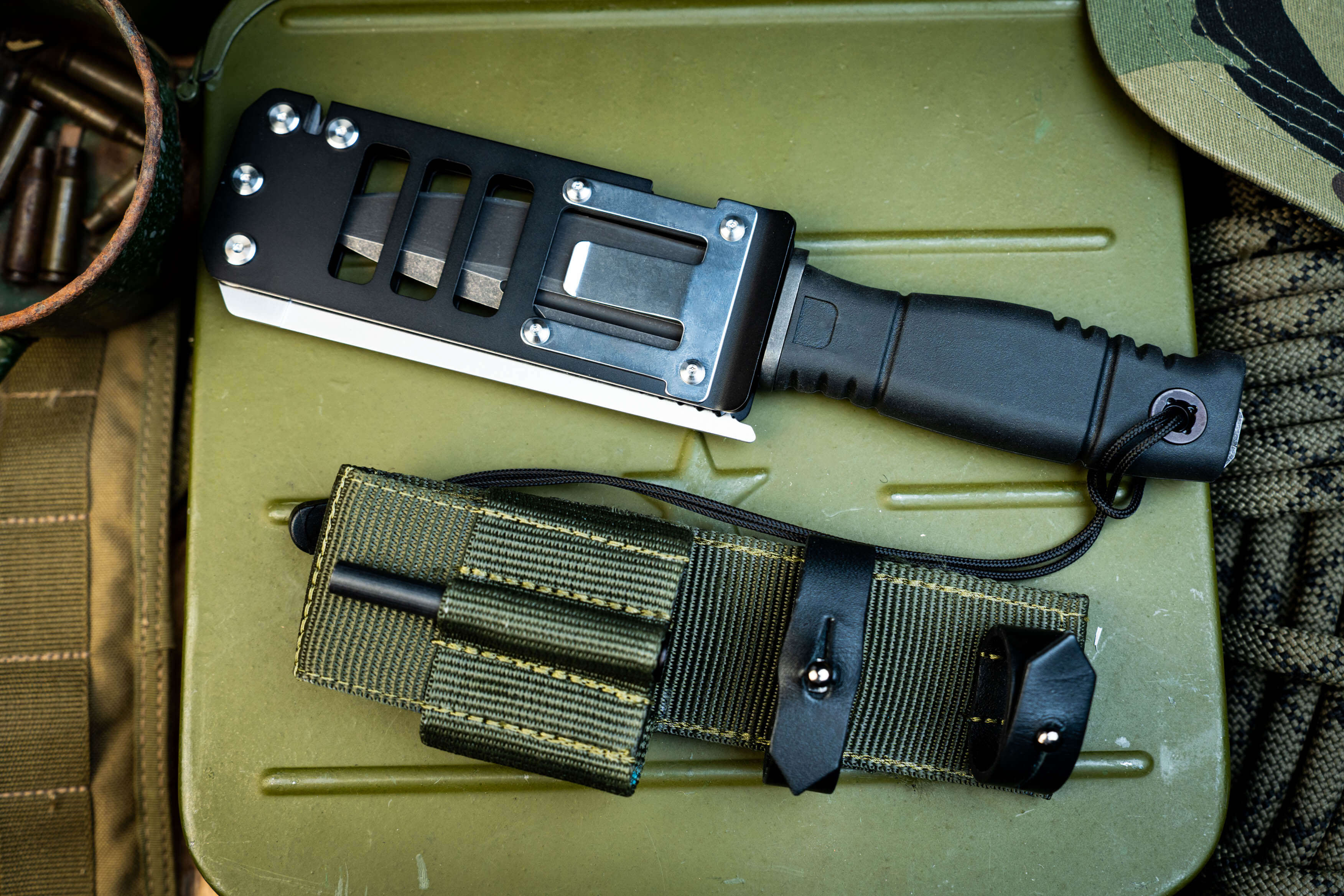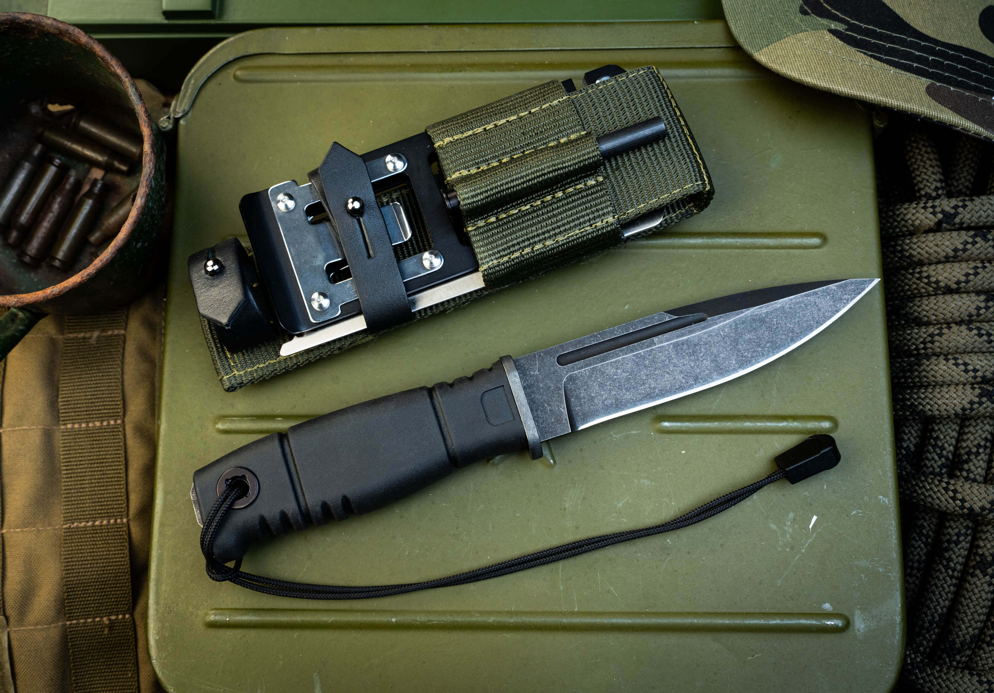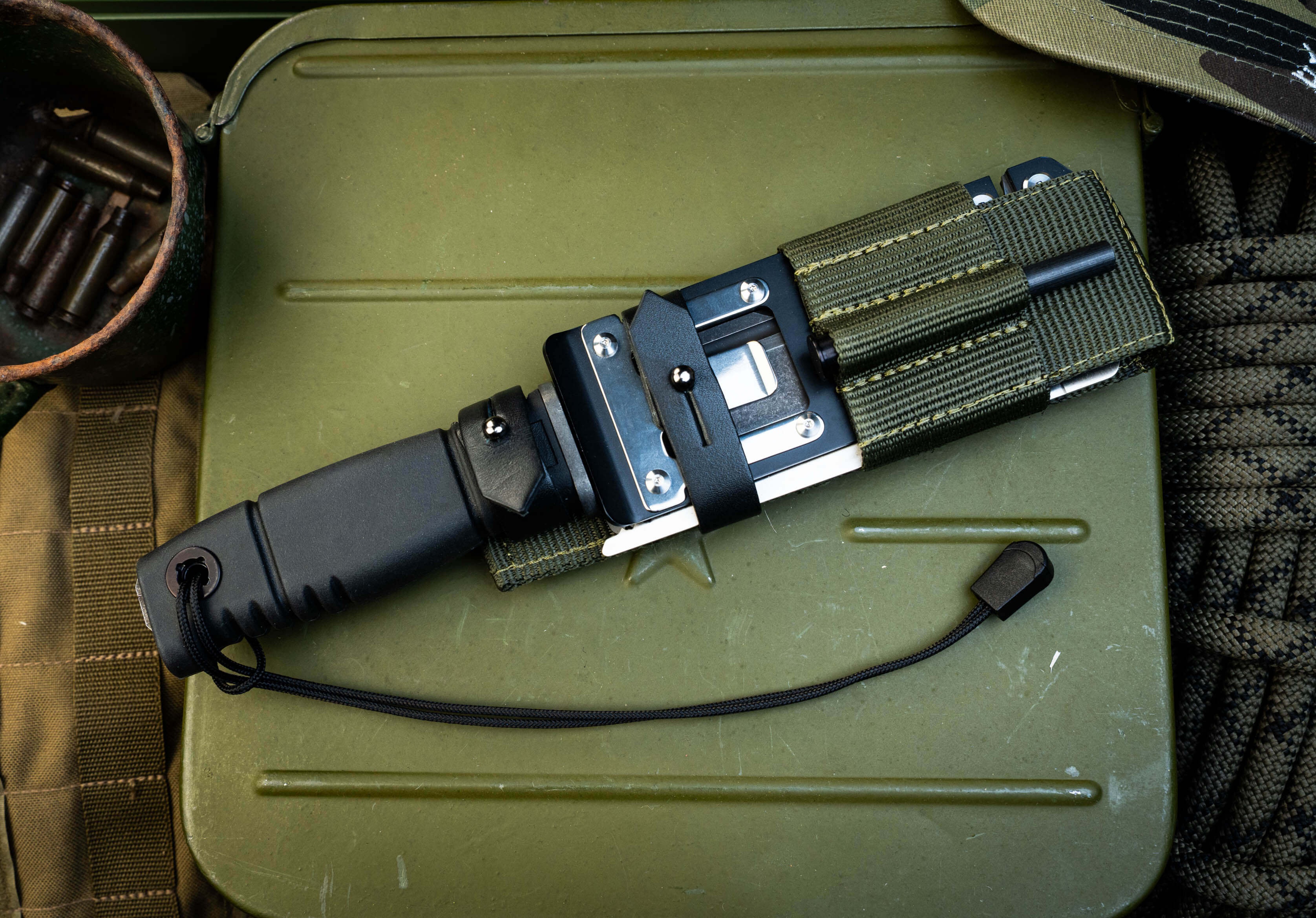 3. Универсальность ношения. Продуманная система подвеса позволяет закрепить нож на любом снаряжении, включая стандарт MOLLE, обеспечивая быстрый доступ к инструменту в любой позиции.