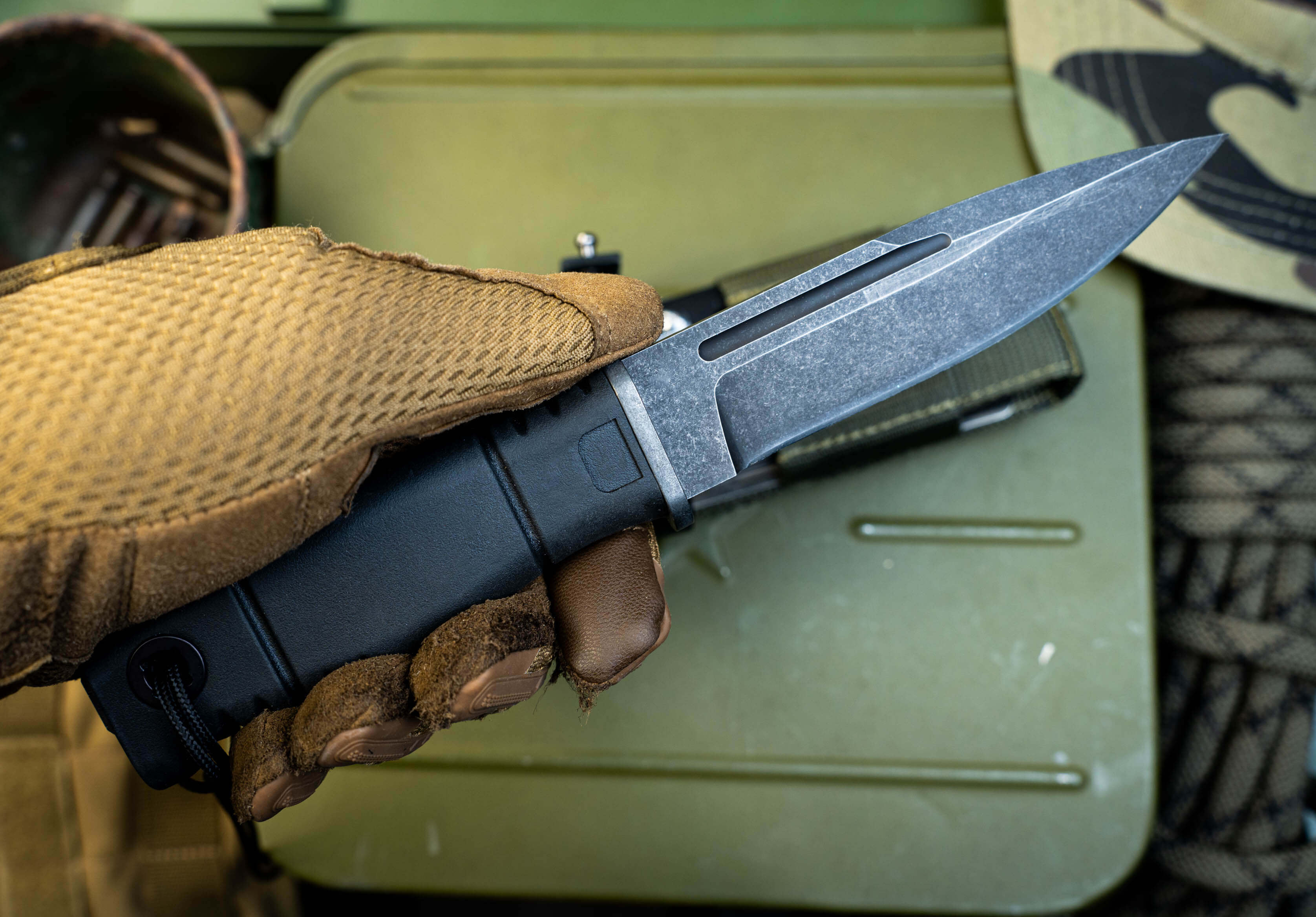 Аварийные ситуации: Встроенный в навершие стеклобой с ударной площадкой позволяет разбивать закаленные стекла и использовать нож как клин при разделке замороженных продуктов.