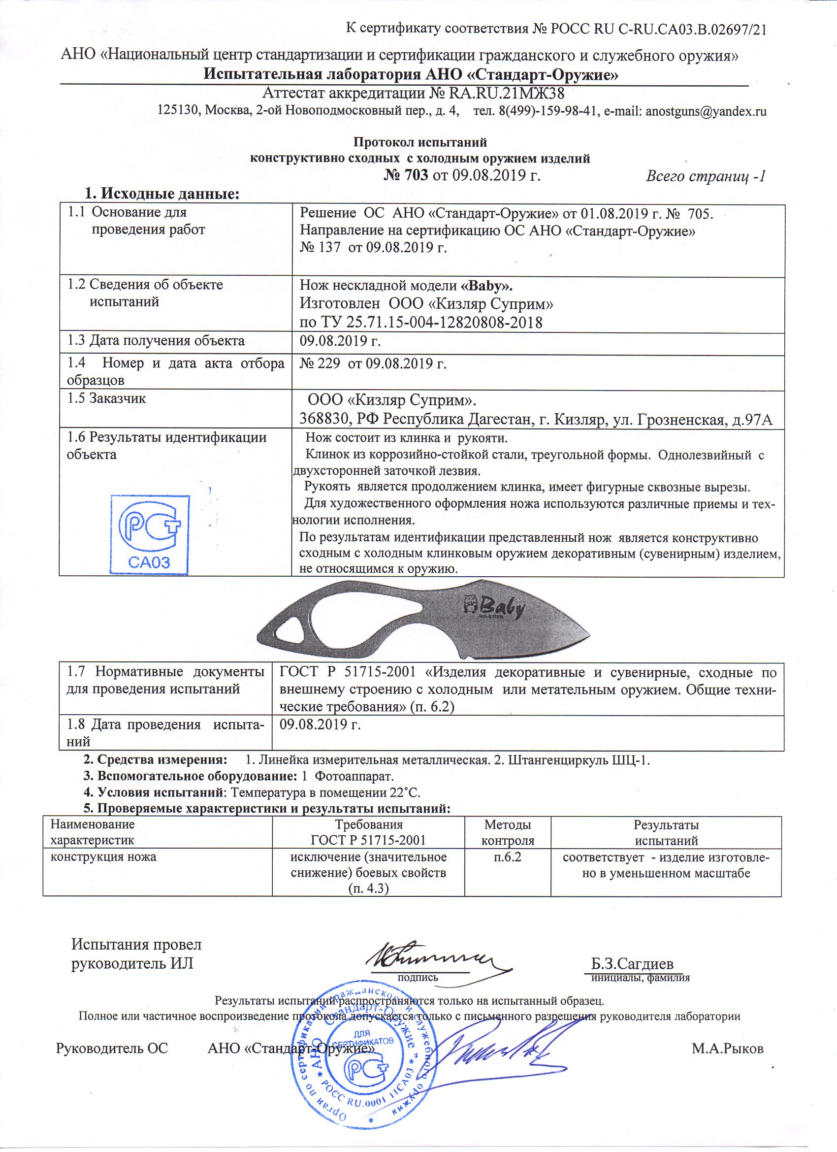 Толщина клинка ±0.1, мм