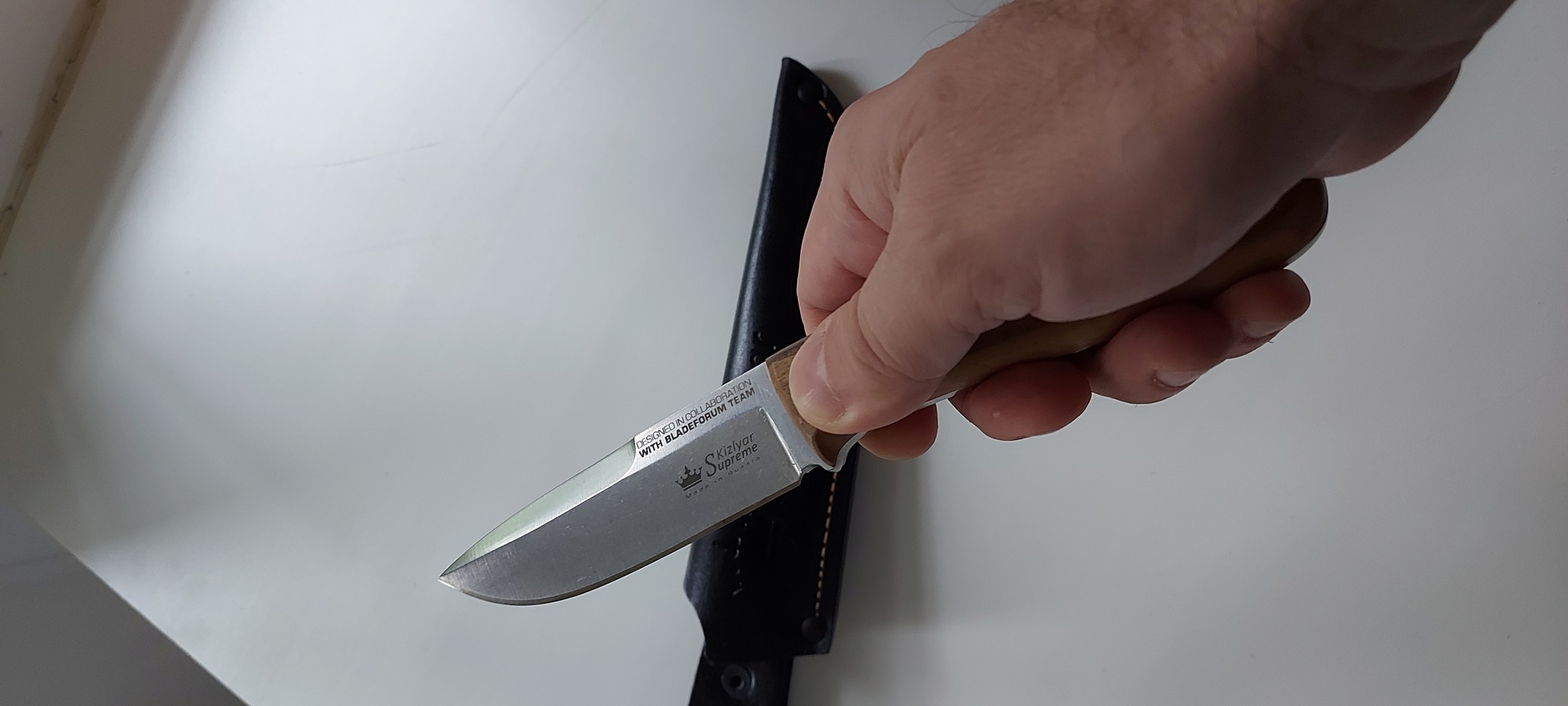 Клинки из K340 по удержанию режущей кромки сравнимы с легендарной D2, однако еще лучше противостоят коррозии и обладают большей прочностью.