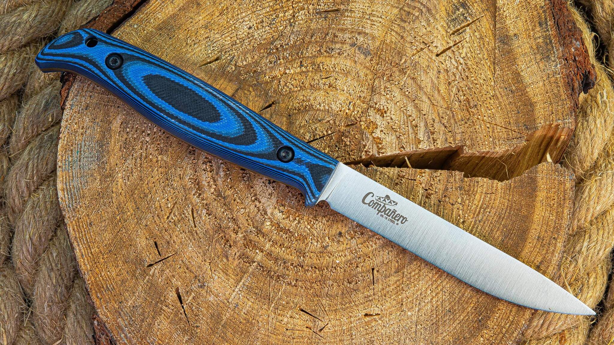 Вся геометрия клинка говорит о том, что Companero – это резак: выпуклая линза спусков, сведенная в ноль, тонкий обух 2.8 мм, узкий и разворотистый клинок, очень деликатное острие. Нож явно не предназначен для больших нагрузок, однако вскрывание различных упаковок, разрезание веревок, нарезка любых продуктов от хлеба и морковки до обвалки туши, а, главное, строгание и работа по дереву – это просто его стихия.