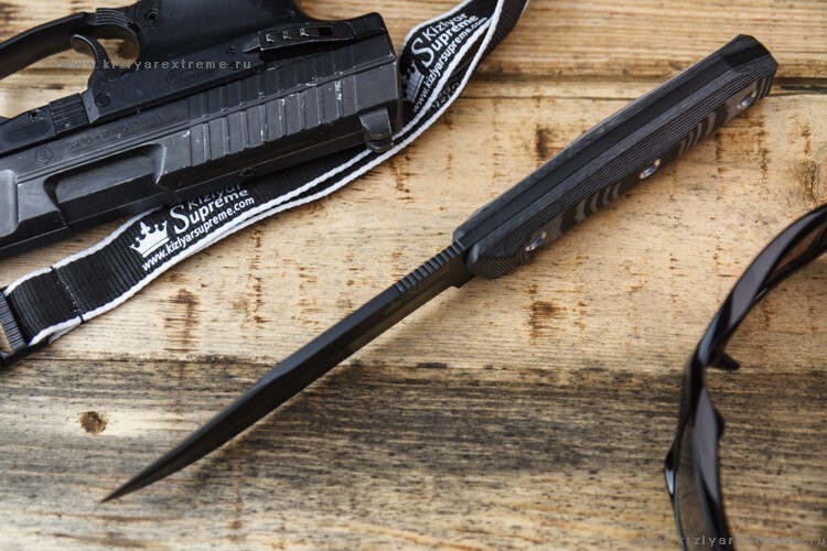 Несмотря на то, что по субъективным ощущениям Kydex немного похож на мягкую пластмассу, это совершенно другой материал, он чрезвычайно стойкий и прочный. Малая гибкость Кайдекса, используемого в чехлах Kizlyar Supreme позволяет конструировать их таким образом, что для фиксации ножа внутри не требуются какие-либо механизмы и фиксаторы - ножны расширяются при вхождении ножа и сразу возвращаются в термоформованную под нож форму.