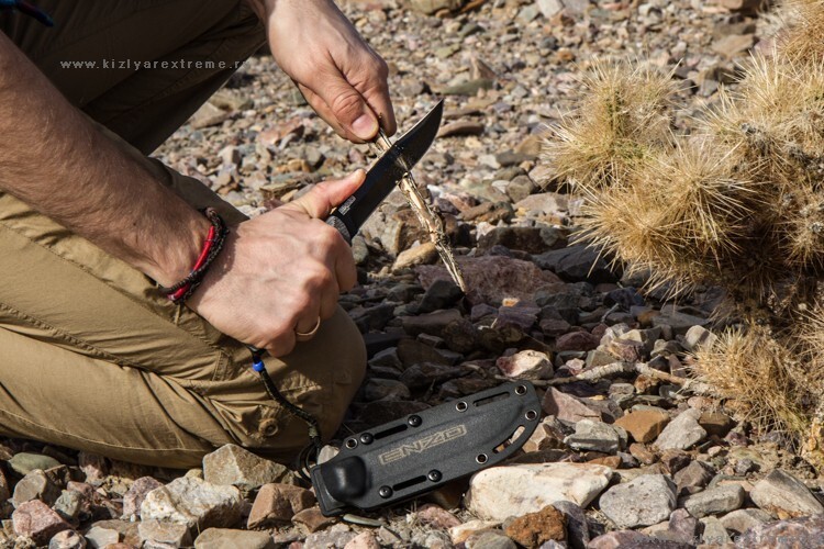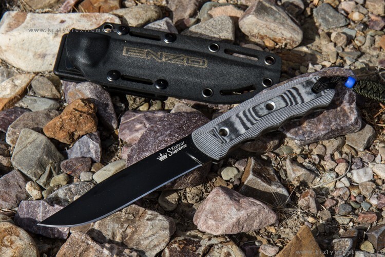 Enzo (Энзо) изготовлен из отлично сбалансированной стали AUS-8 с твердостью 58-60 HRC и покрыт стойким к внешним воздействиям покрытием по технологии Black Coating, нож обладает эргономичной рукоятью из Микарты и снабжен чехлом из Kydex с переставляемой клипсой.