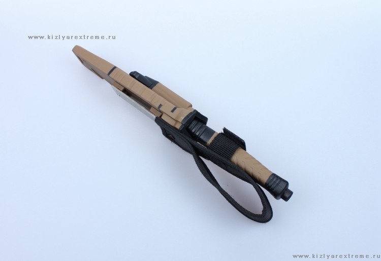 Кроме того, в чехол встроен стропорез, а в специальном гнезде закреплено вынимающееся огниво.