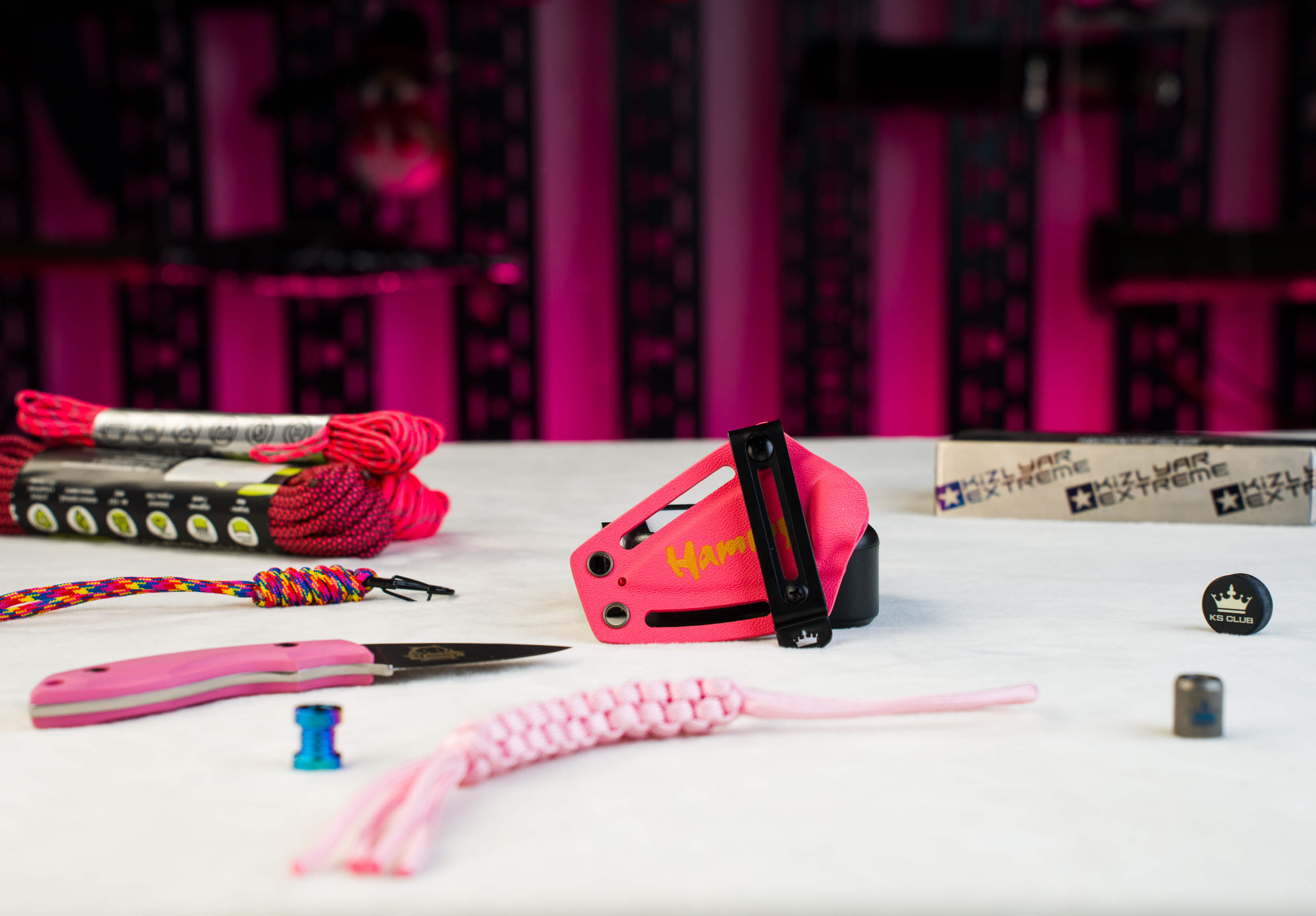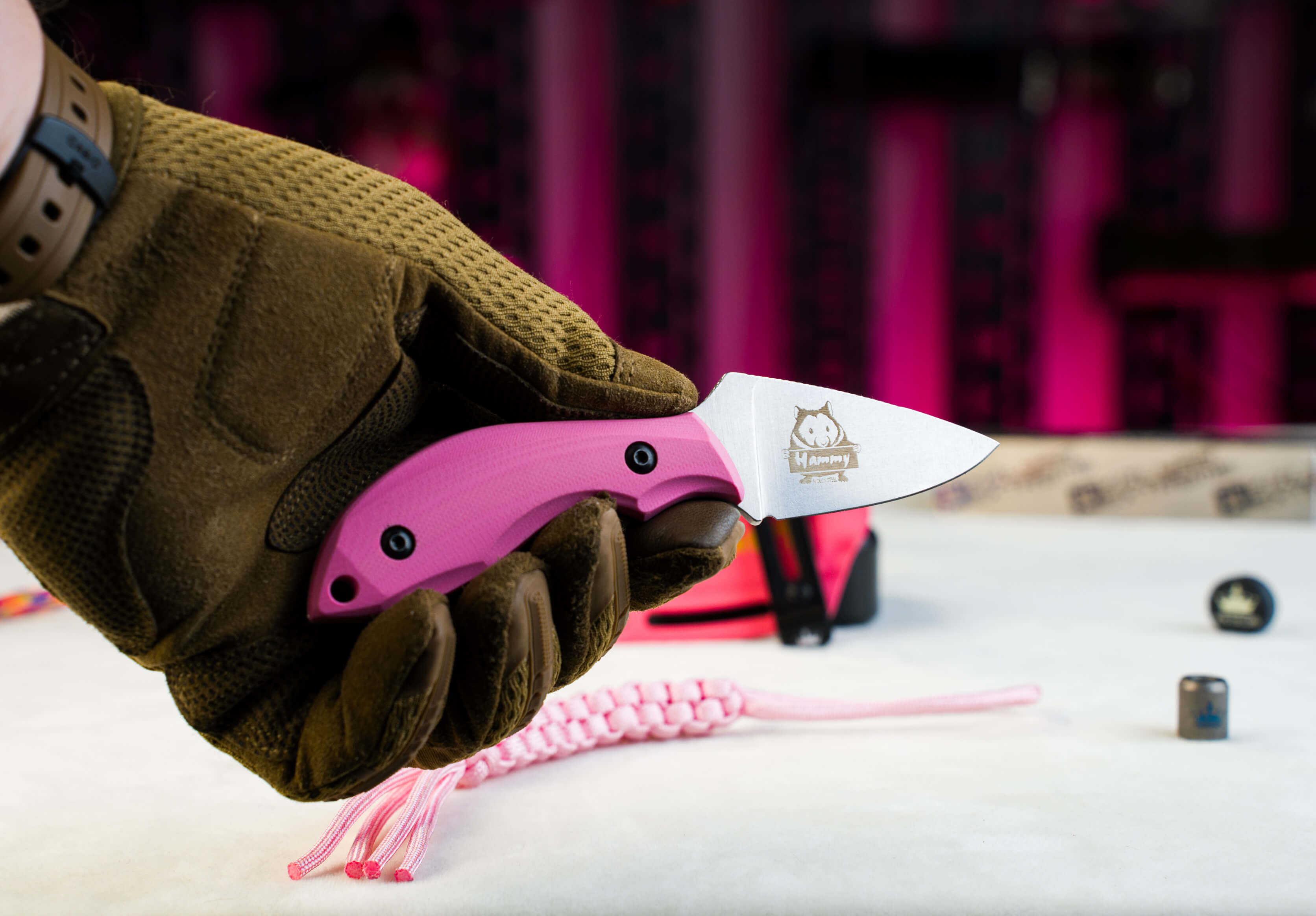 Версия с розовой рукоятью и розовыми ножнами из кайдекса — смелый выбор как для уверенного мужчины, так и для дамы, интересующейся ножевой темой. А ещё это тот самый случай, когда нож «берут просто посмотреть»… и больше уже не возвращают. Потому что нередко именно с этого Hammy ваша жена внезапно обнаруживает, что EDC — это удобно, красиво и вообще «а можно такой же, но мой?».
