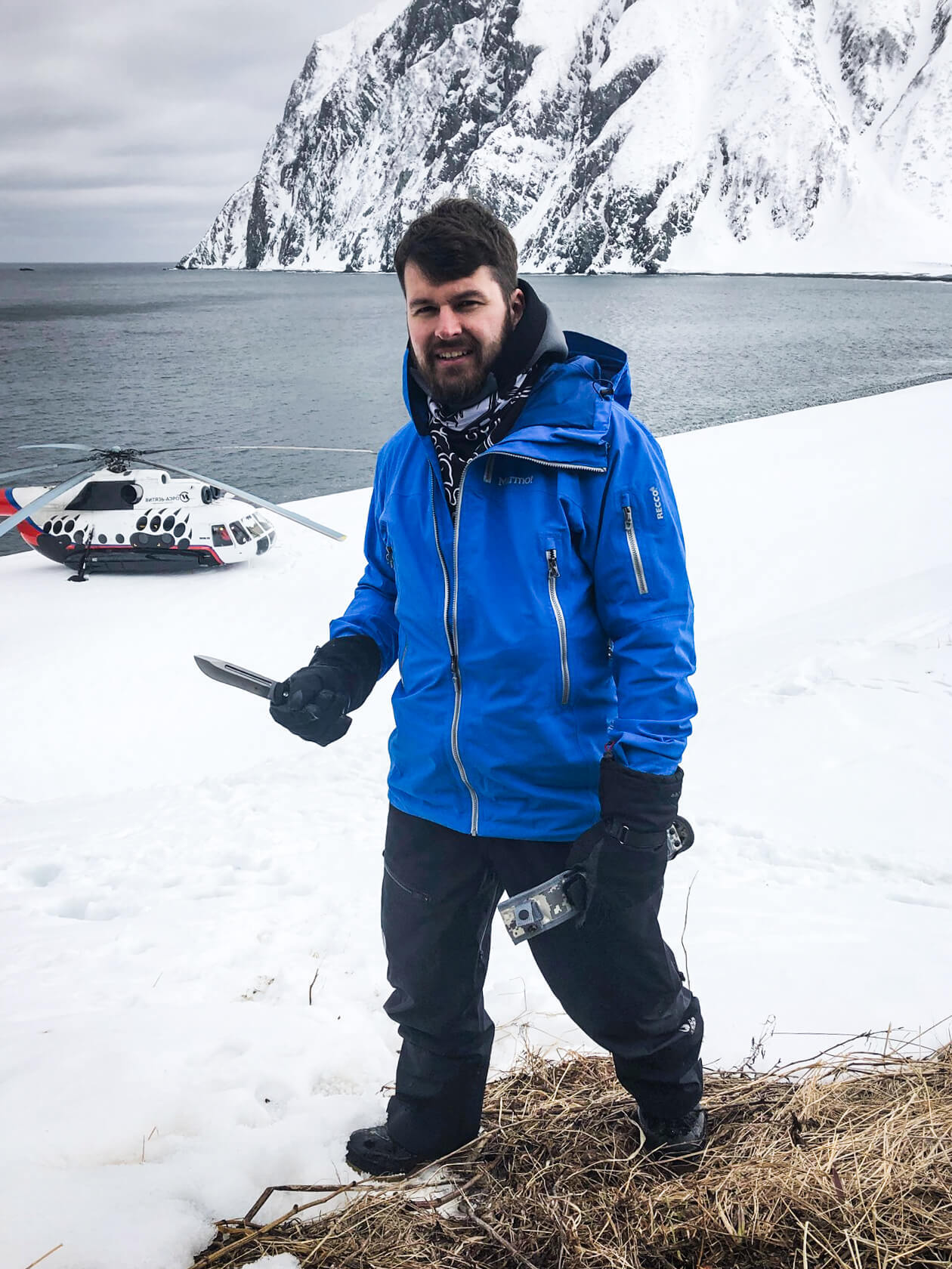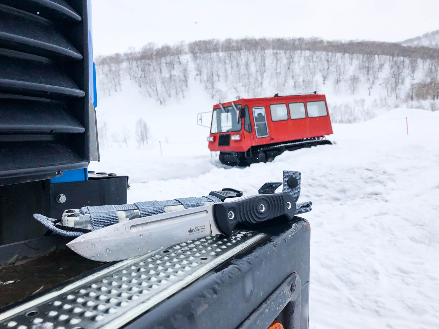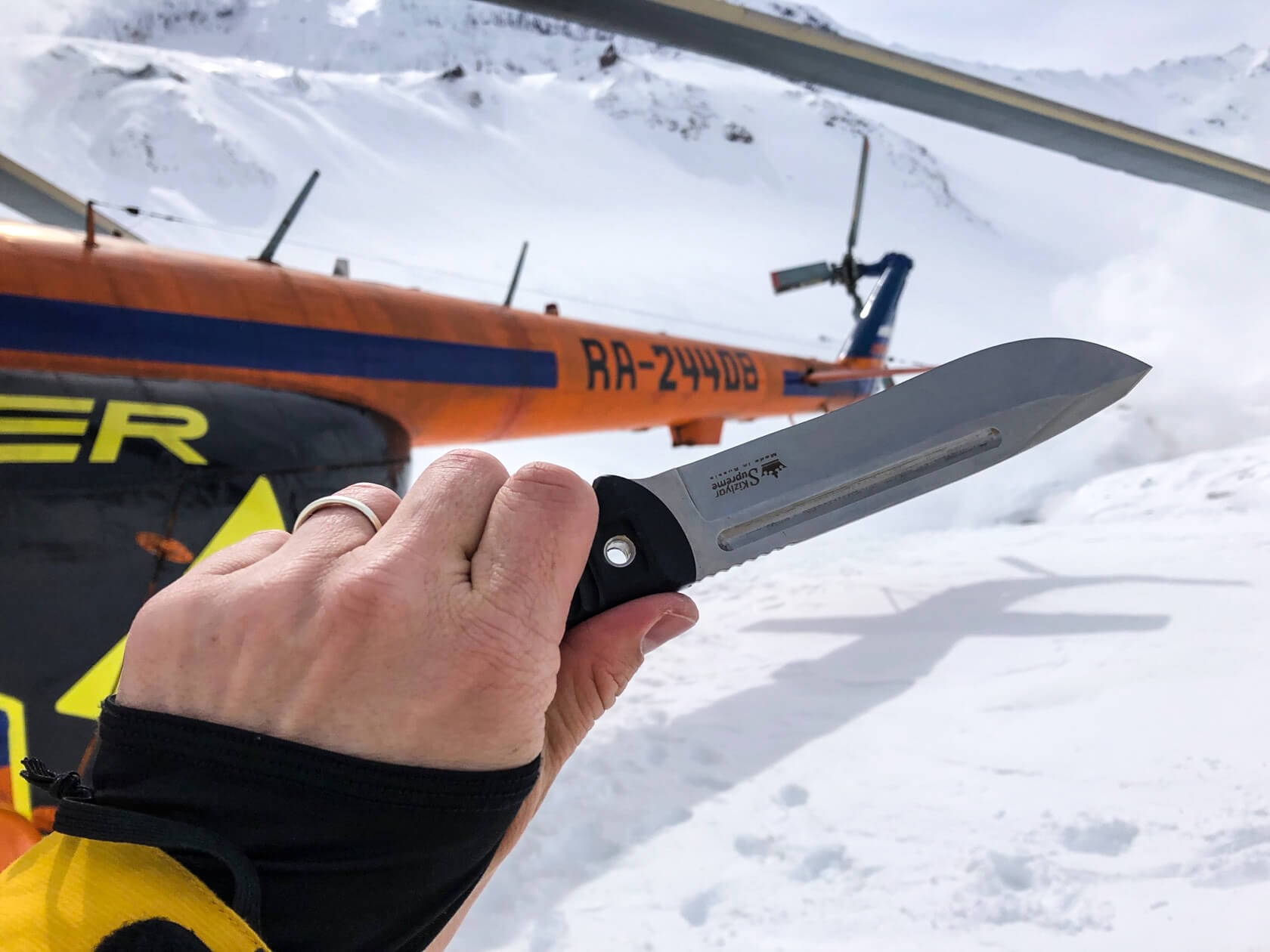 Форма рукояти очень удобна, она достаточно универсальна для ладоней разной антропометрии, имеет надежный ограничитель, предотвращающий возможное соскальзывание руки на лезвие при работе. Расширяющаяся тыльная часть рукояти позволяет надежно удерживать нож при рубящих или секущих ударах. Накладки рукояти текстурированы дугообразными вырезами для лучшего удержания мокрыми или жирными руками. Навершие рукояти имеет закругленную форму, при этом грани накладок тщательно скруглены. Такая форма позволяет комфортно работать хватом с упором ладони в рукоять, если нужно что-нибудь расковырять, поддеть.